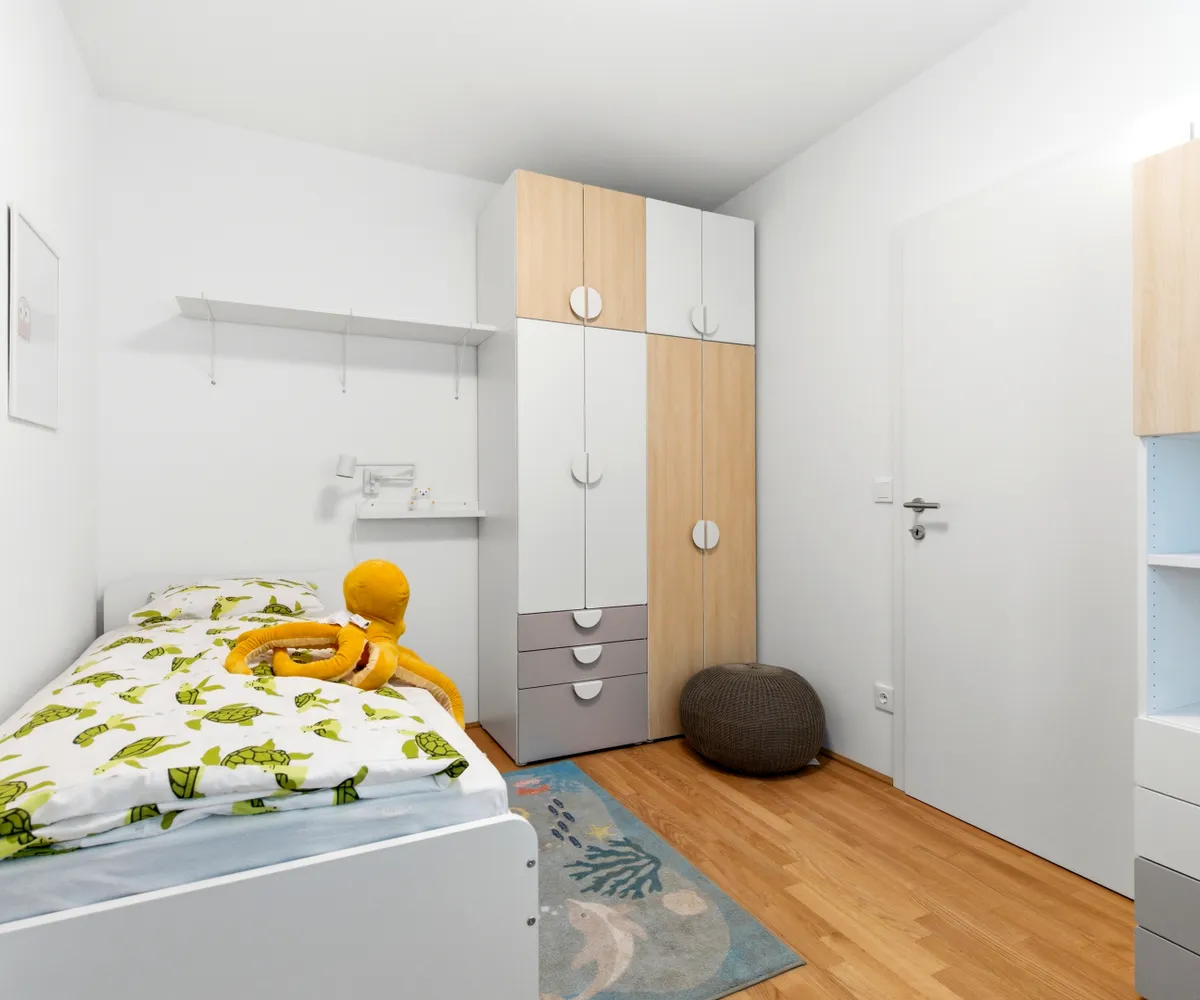 Die Wohnungen bieten hochwertige Ausstattungsdetails wie Parkett- oder Keramikböden, maßgefertigte Einbauküchen, Fußbodenheizung über Fernwärme, eigene Kellerabteile sowie private Außenflächen in Form von Balkonen oder Gärten. Sämtliche Einheiten sind barrierefrei über Aufzüge oder überdachte Erschließungswege zugänglich.