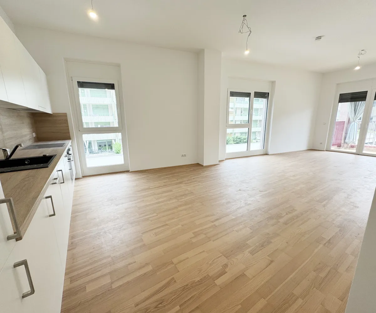 Den zukünftigen Smart Quadrat -Bewohnern stehen zudem eine Vielzahl an Gemeinschaftsräumen, wie z.B. Fitnessräume, Shared Offices, Indoorspielplätze sowie ein Spielplatz im Innenhof, Washing-Lounges, eine Fahrradwerkstatt, Hobby- & Freizeiträume sowie Stellplätze in der hauseigenen Garage zur Verfügung. Ein Nahversorger und eine Bäckerei mit Caféhaus befinden sich ebenfalls direkt im Wohnkomplex. Weitere Geschäfte des täglichen Bedarfs, Ärzte, Schulen und Gastronomielokale sind fußläufig erreichbar. Auch eine große Parkanlage wird derzeit auf dem Nachbargrundstück realisiert. Ein perfekter Mix aus urbanem Leben und privater Erholung!