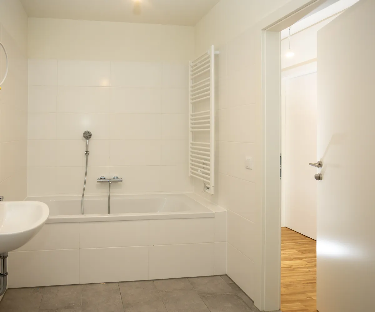 Architektonisch überzeugt Murleben mit einem klaren, modernen Stil, großzügigen Fensterflächen und durchdachten Grundrissen, die Offenheit und Funktionalität vereinen. Jede Einheit verfügt über einen privaten Außenbereich – Balkon, Terrasse oder Dachgarten mit Holzbelag – und bietet damit zusätzlichen Wohnkomfort im Freien.