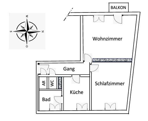 Diese ca. 66 m2 Wohnung teilt sich wie folgt auf:
