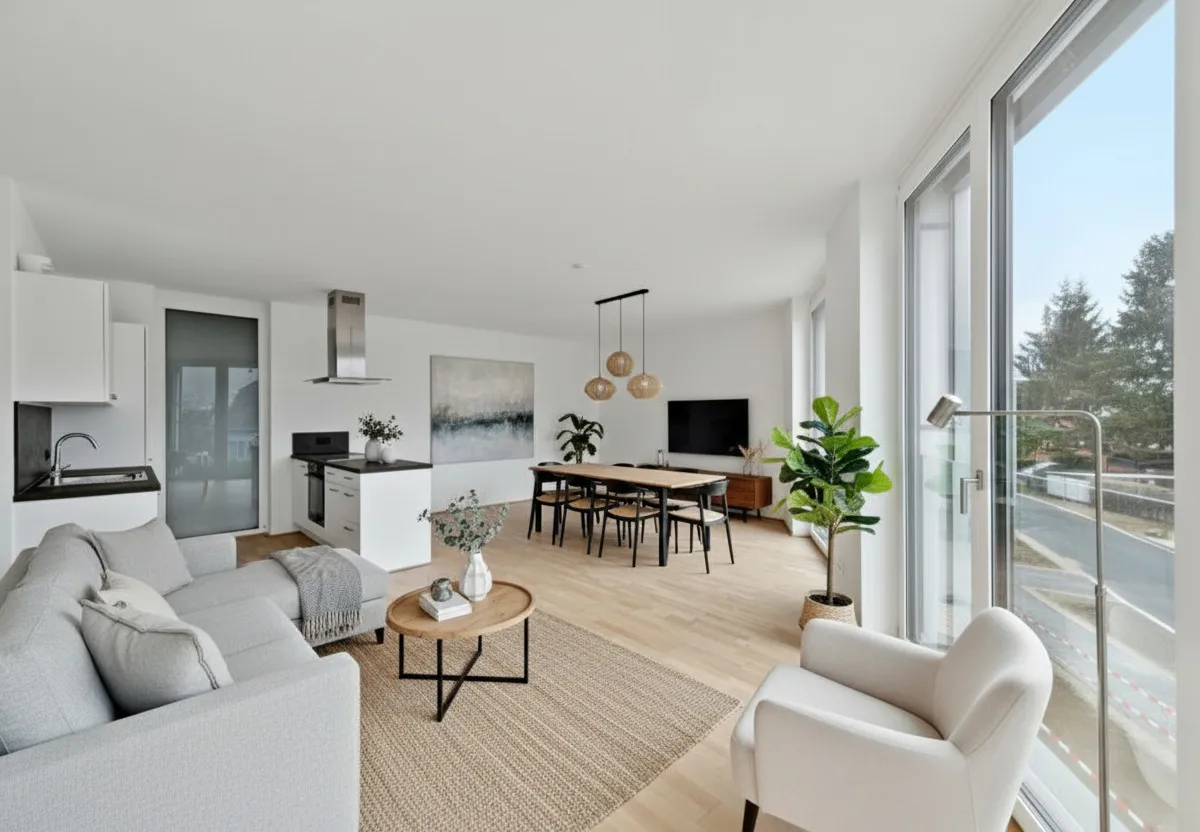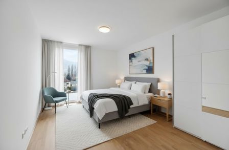 Die hochwertig ausgestatteten Neubauwohnungen mit durchdachten Grundrissen verfügen über großzügige Freiflächen wie Balkone, Loggien oder Terrassen mit sensationellen Blick ins Grüne die sich hervorragend als persönlichen Rückzugsort anbieten um die Seele baumeln zu lassen. Durch die bodentiefen Fenster sind die Wohnungen lichtdurchflutet und geben das Gefühl, der Natur ganz nahe zu sein.