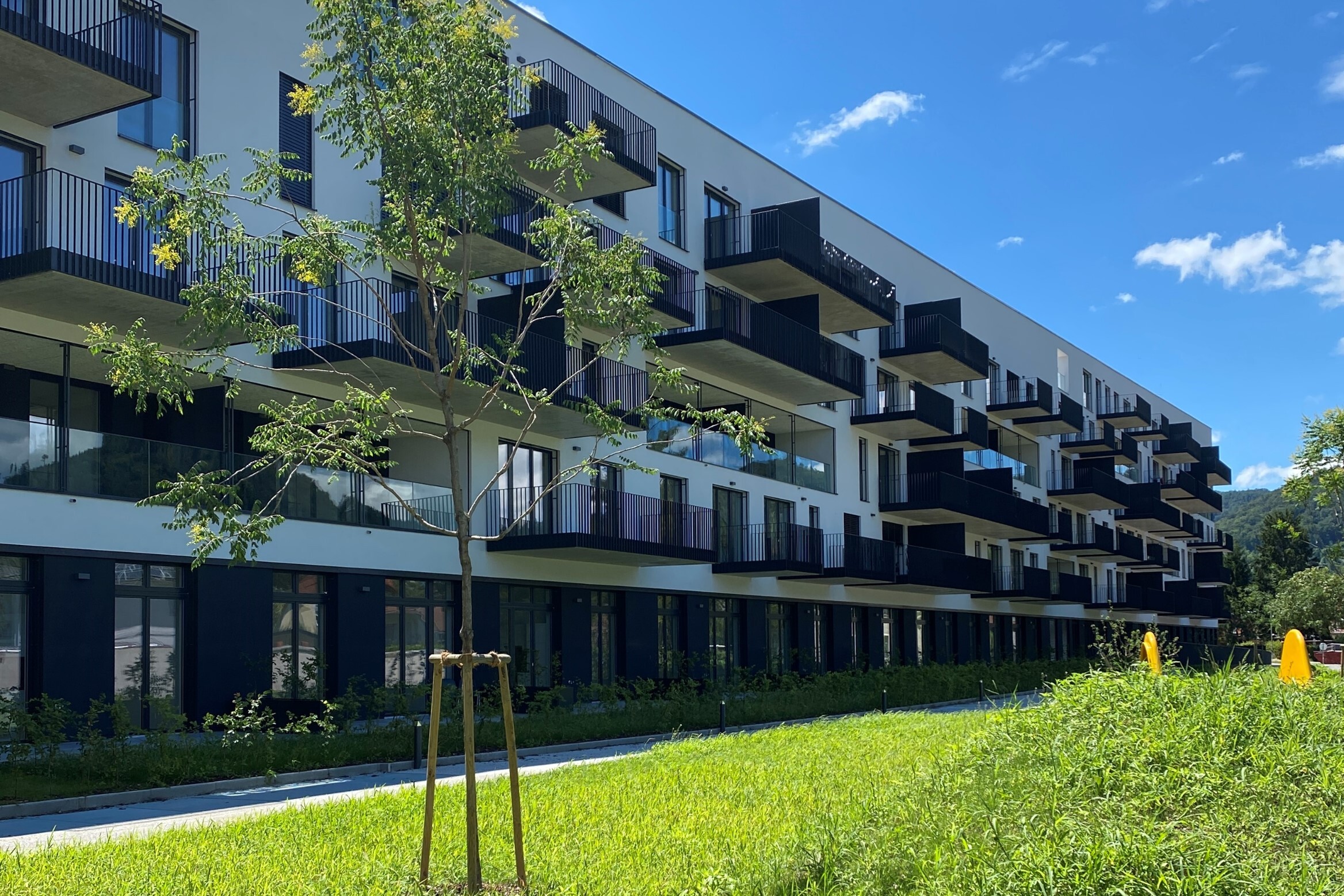 Die hochwertig ausgestatteten Neubauwohnungen mit durchdachten Grundrissen verfügen über großzügige Freiflächen wie Balkone, Loggien oder Terrassen mit sensationellen Blick ins Grüne die sich hervorragend als persönlichen Rückzugsort anbieten um die Seele baumeln zu lassen. Durch die bodentiefen Fenster sind die Wohnungen lichtdurchflutet und geben das Gefühl, der Natur ganz nahe zu sein.
