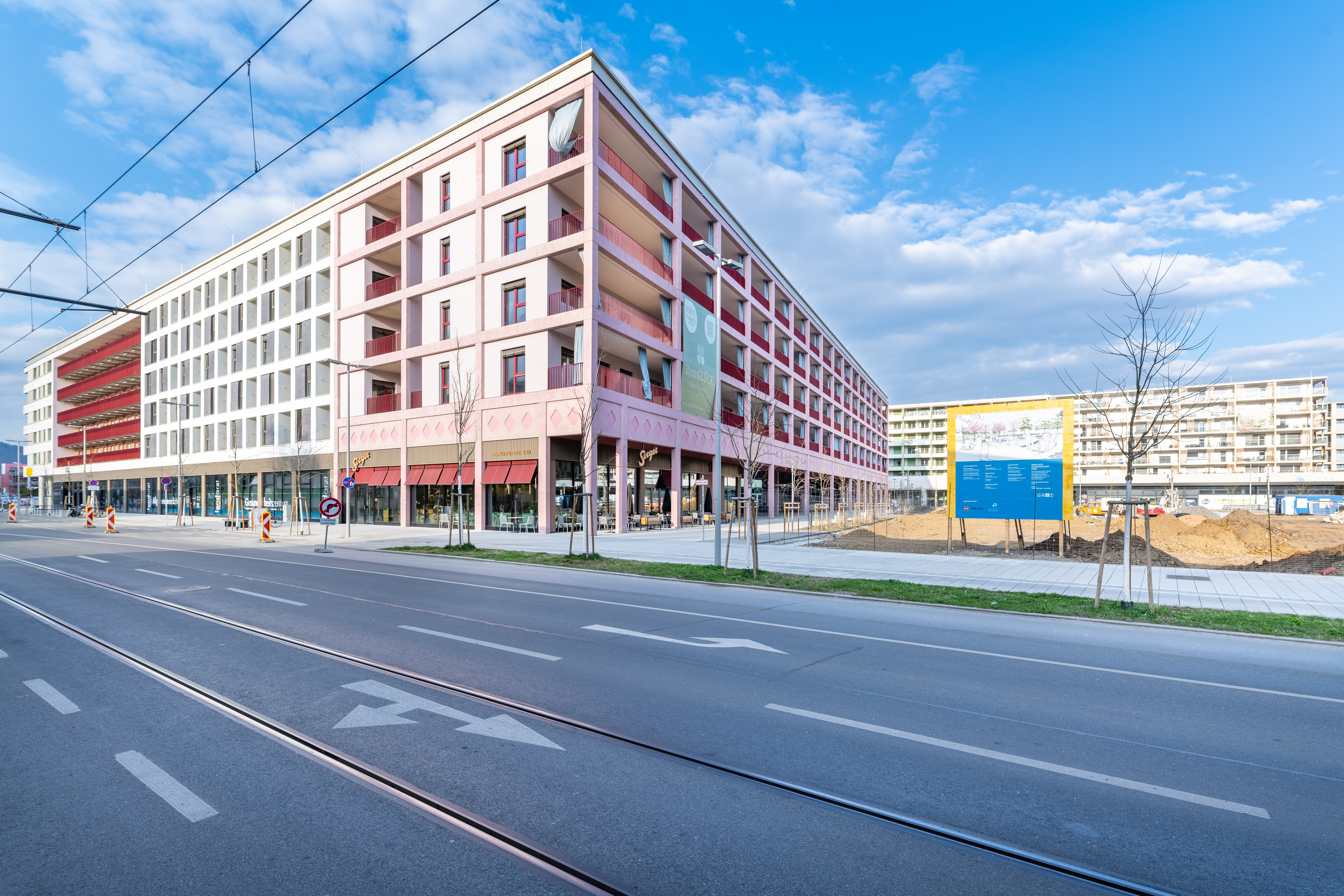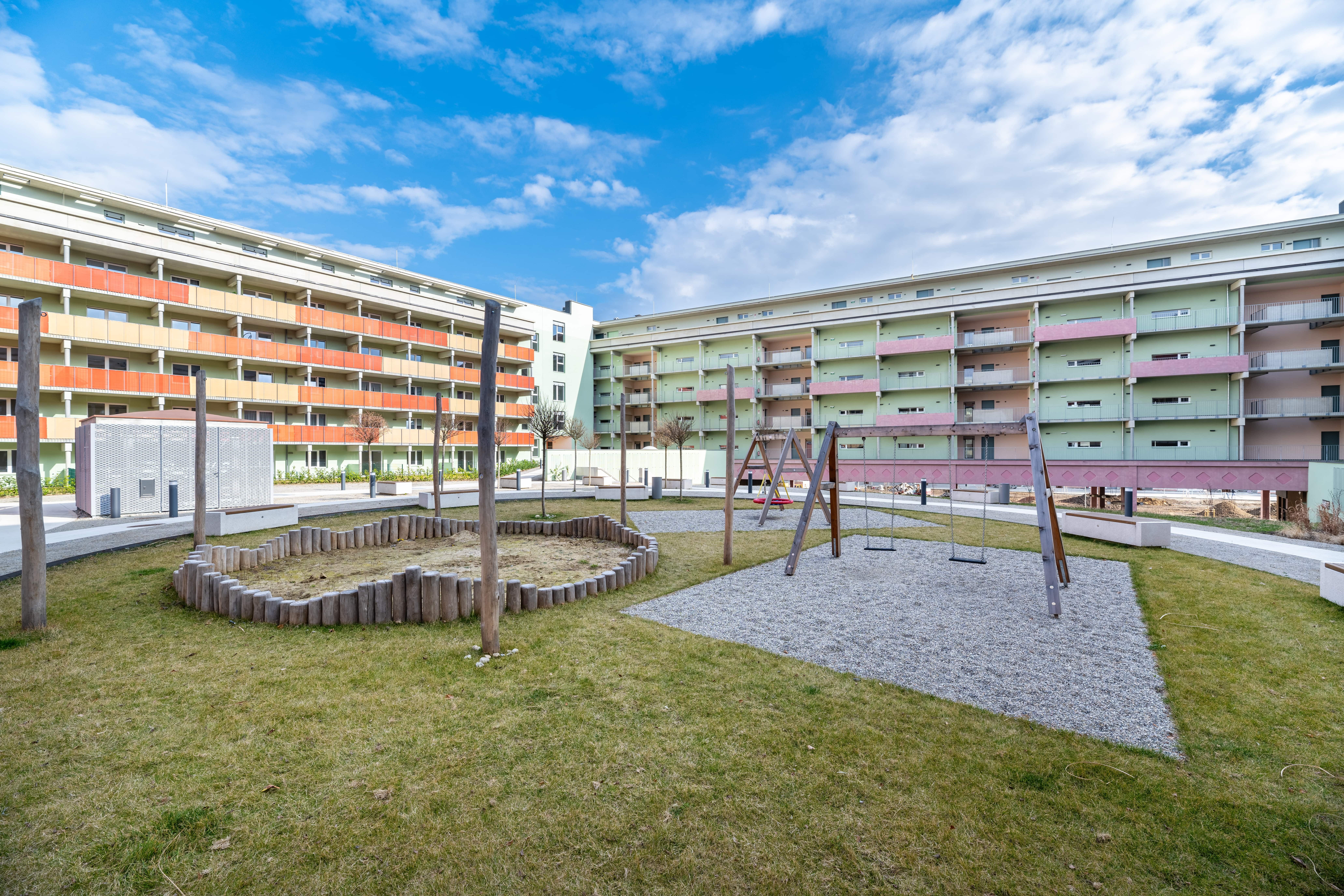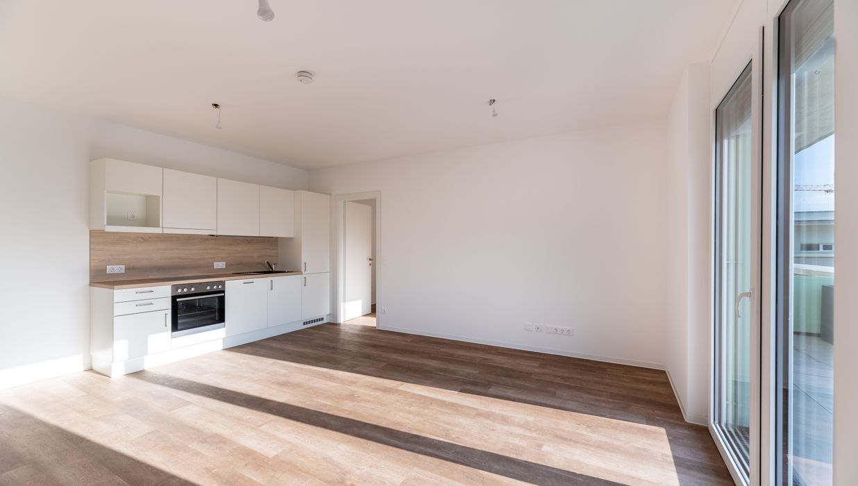 Durchdachte Grundrisse, großzügige Wohnflächen und ein vielseitiger Wohnungsmix bieten für jede Lebensphase das passende Zuhause. Gemeinschafts- und Serviceflächen: Fitnessräume, Shared Offices, Spielplätze, Washing-Lounges, Fahrradwerkstatt, Hobby- & Freizeiträume. Nahversorgung, Bäckerei mit Café und Einkaufsmöglichkeiten fußläufig erreichbar. Auf dem Nachbargrundstück entsteht eine neue Parkanlage.