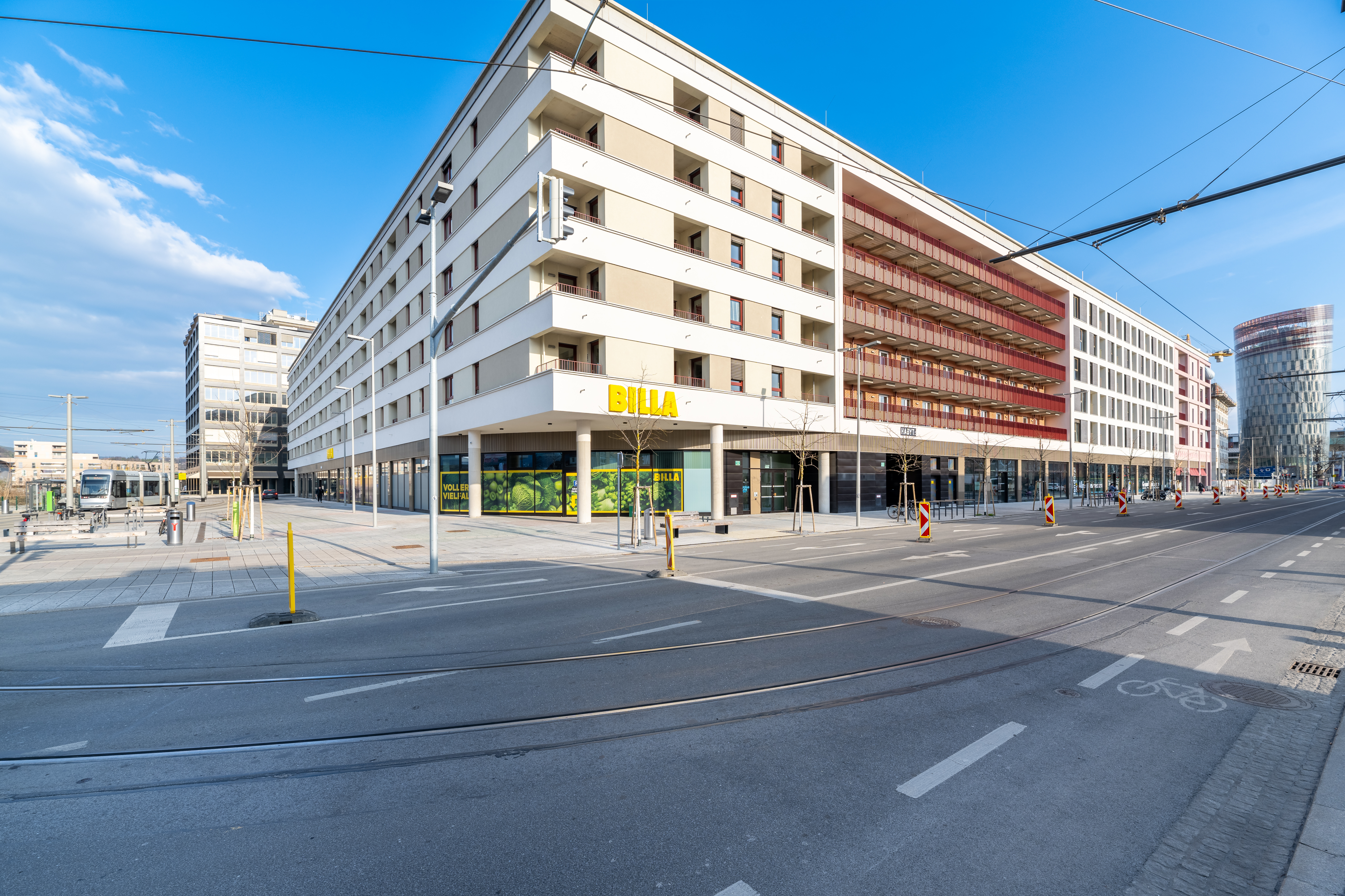 Durchdachte Grundrisse, großzügige Wohnflächen und ein vielseitiger Wohnungsmix bieten für jede Lebensphase das passende Zuhause. Gemeinschafts- und Serviceflächen: Fitnessräume, Shared Offices, Spielplätze, Washing-Lounges, Fahrradwerkstatt, Hobby- & Freizeiträume. Nahversorgung, Bäckerei mit Café und Einkaufsmöglichkeiten fußläufig erreichbar. Auf dem Nachbargrundstück entsteht eine neue Parkanlage.
