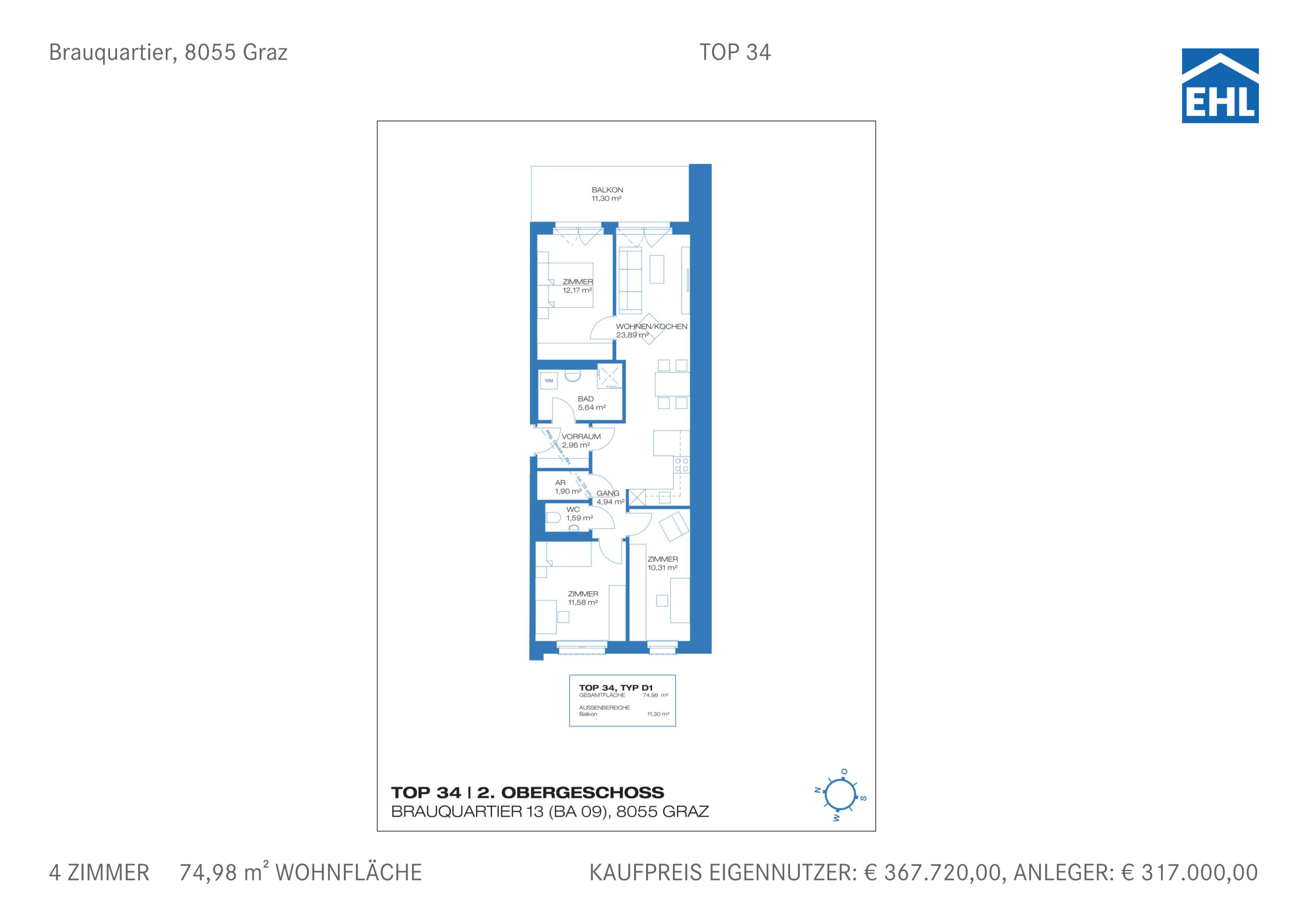 8055 Graz, Brauquartier 56, Steiermark