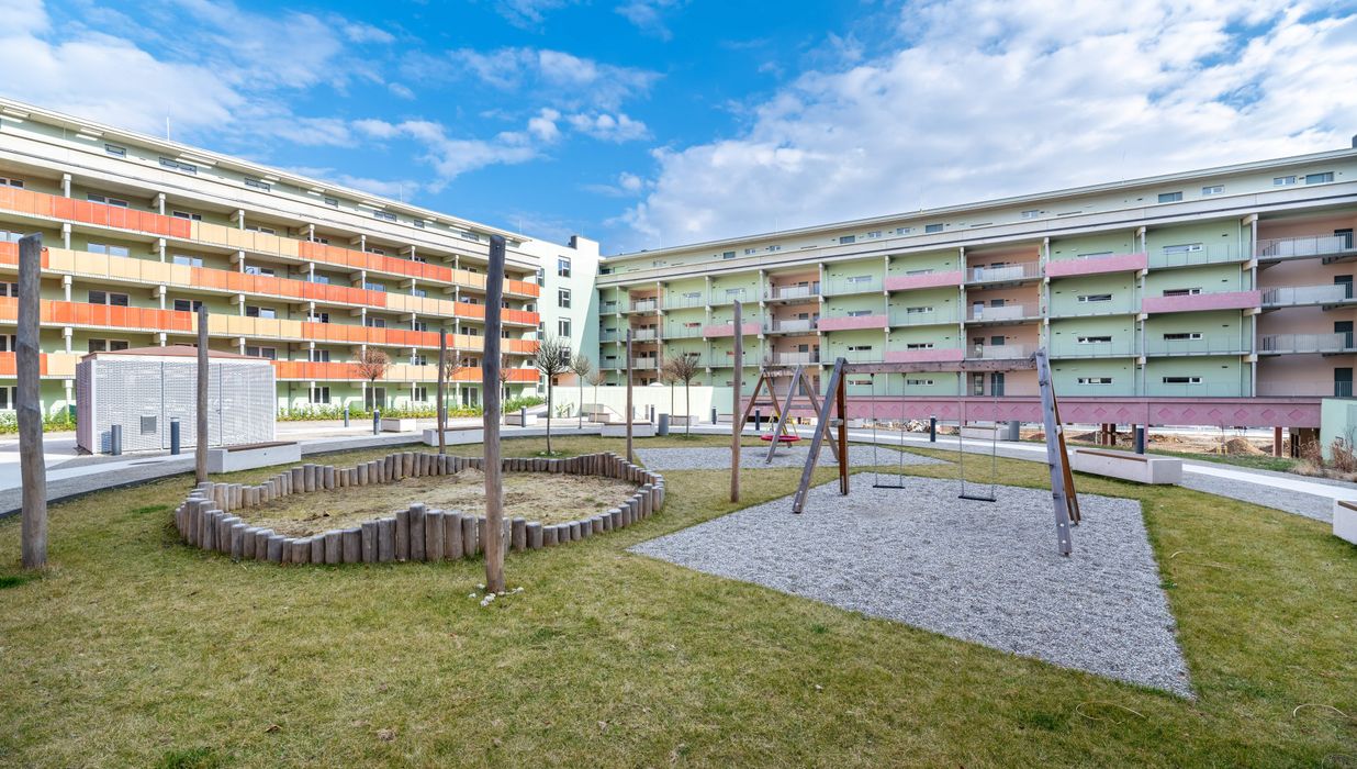 Durchdachte Grundrisse, großzügige Wohnflächen und ein vielseitiger Wohnungsmix bieten für jede Lebensphase das passende Zuhause. Gemeinschafts- und Serviceflächen: Fitnessräume, Shared Offices, Spielplätze, Washing-Lounges, Fahrradwerkstatt, Hobby- & Freizeiträume. Nahversorgung, Bäckerei mit Café und Einkaufsmöglichkeiten fußläufig erreichbar. Auf dem Nachbargrundstück entsteht eine neue Parkanlage.