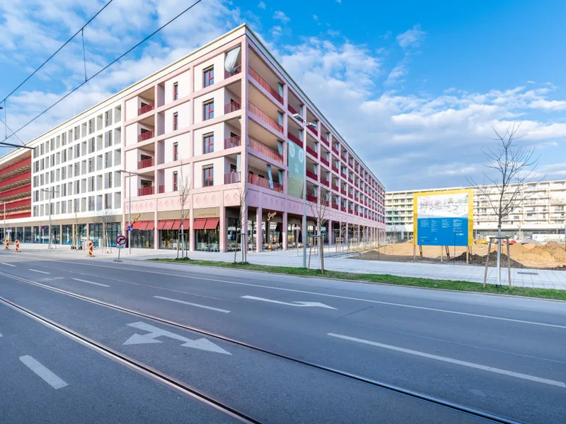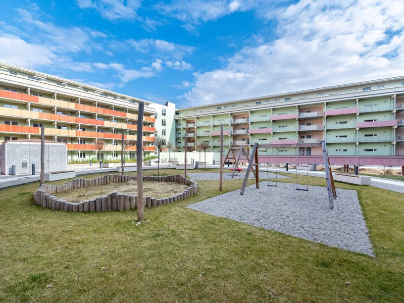 Durchdachte Grundrisse, großzügige Wohnflächen und ein vielseitiger Wohnungsmix bieten für jede Lebensphase das passende Zuhause. Gemeinschafts- und Serviceflächen: Fitnessräume, Shared Offices, Spielplätze, Washing-Lounges, Fahrradwerkstatt, Hobby- & Freizeiträume. Nahversorgung, Bäckerei mit Café und Einkaufsmöglichkeiten fußläufig erreichbar. Auf dem Nachbargrundstück entsteht eine neue Parkanlage.