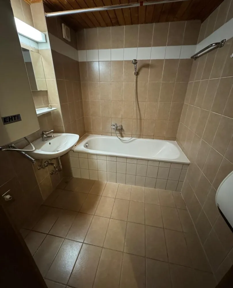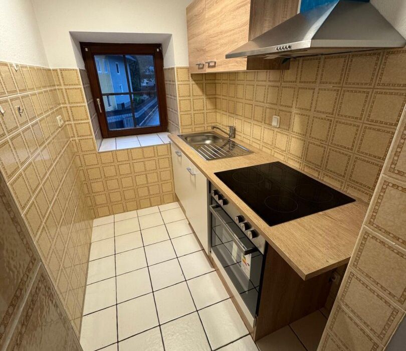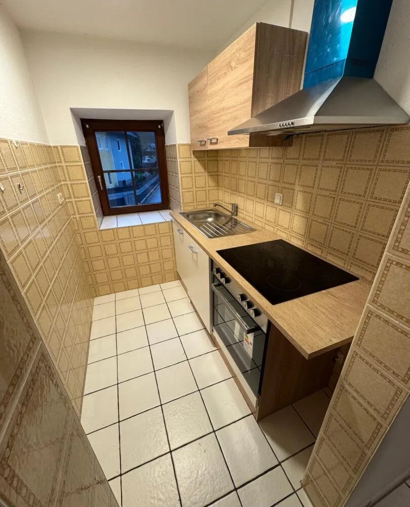 Die Wohnung selbst liegt im 1. Stock mit Blick ins Grüne und ist n/o ausgerichtet. Bestehend ist die Wohnung aus einem Vorraum, Toilette, einem Badezimmer mit Badewanne/Waschtisch/WM-Anschluss, einer abgetrennten Küche, einem Wohnbereich mit Kachelofen und einem Schlafbereich.