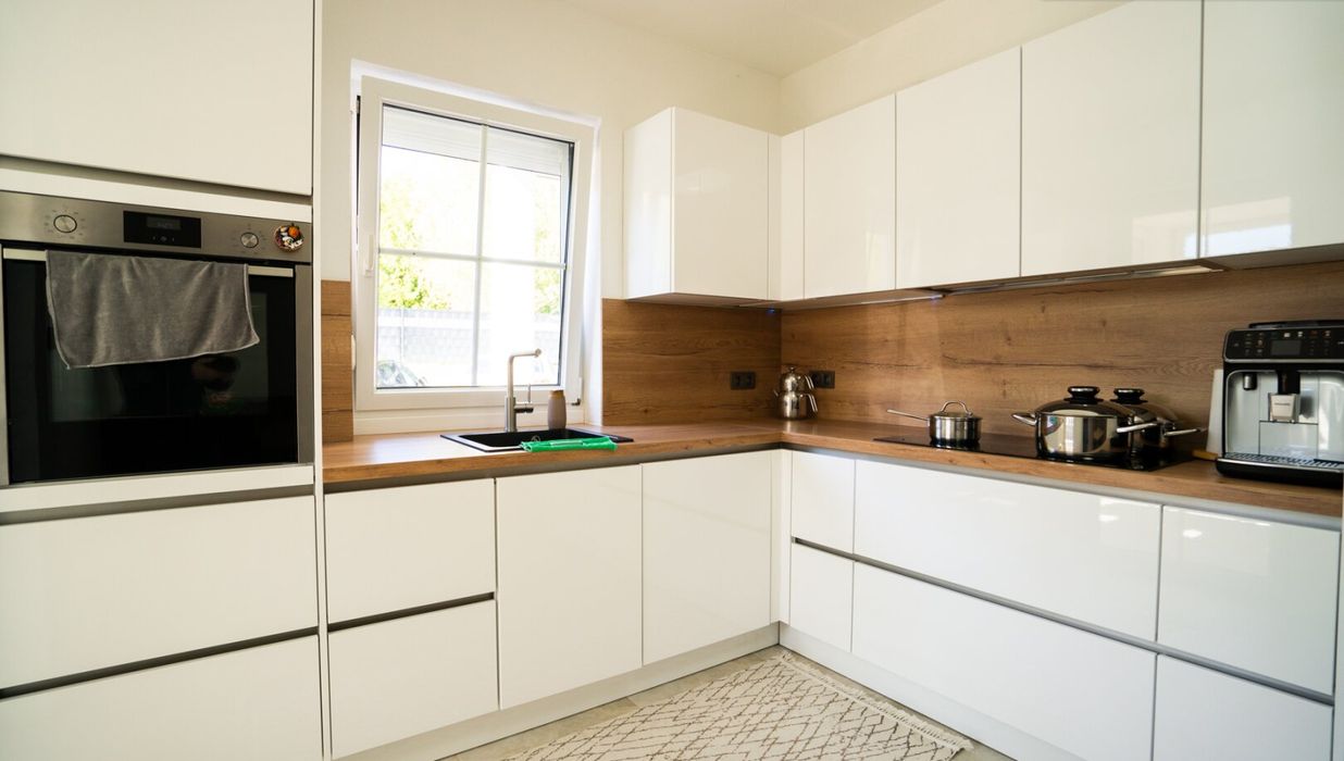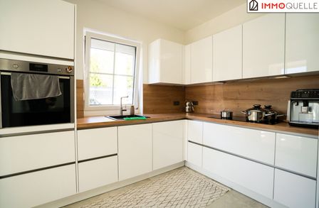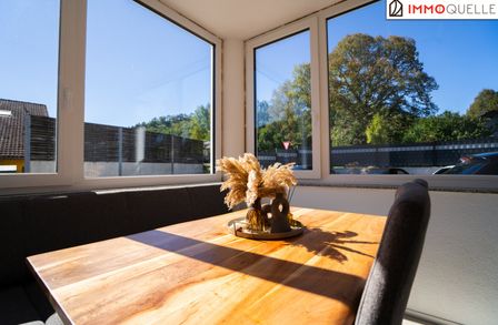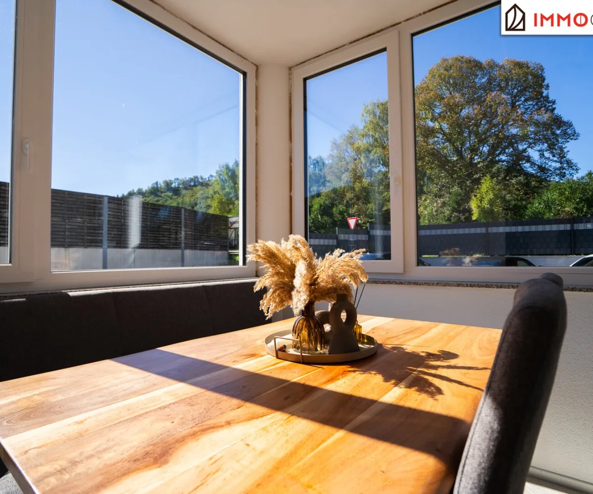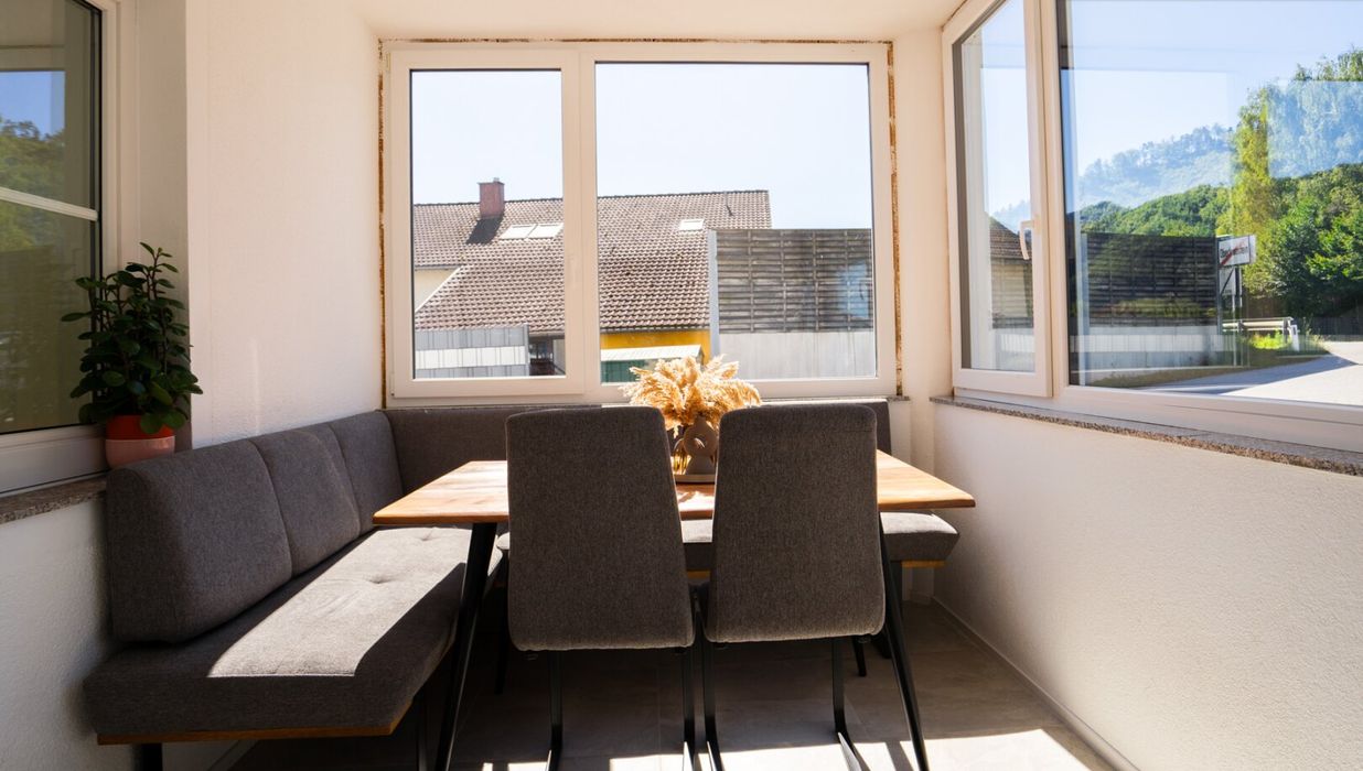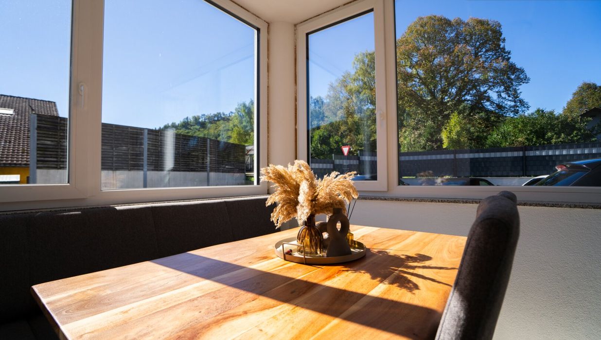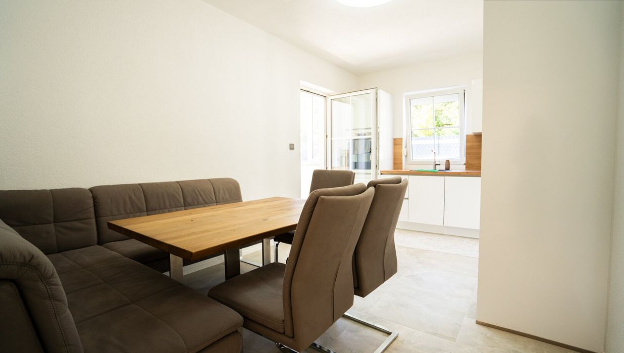 Die moderne Einbauküche liegt direkt neben dem Wohnzimmer und führt offen ins südwestlich gelegene Esszimmer. Hier starten Sie mit einem Espresso in den Tag – oder lassen ihn bei einem gemütlichen Abendessen ausklingen.