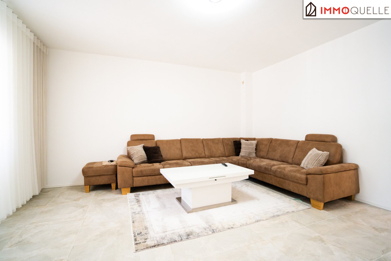 Geradeaus eröffnet sich das großzügige Wohnzimmer (ca. 23 m²) mit seinen weitläufigen Fensterflächen. Hier findet Ihr Alltag seinen Mittelpunkt – ob mit Familie, Freunden oder einfach in stiller Einkehr. Von hier aus gelangen Sie direkt auf die Terrasse mit rund 11,5 m², die in nordwestlicher Richtung liegt.