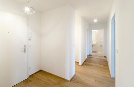 In allen Wohn- und Schlafräumen ist Echtholz-Parkett in Eiche Natur verlegt, im Badezimmer und WC modernes Feinsteinzeug. Die ausgewählten Keramiken und Armaturen lassen hier behagliches Wellnessgefühl einziehen.