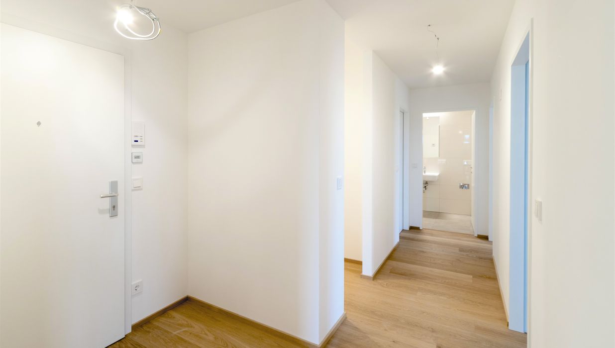 Im zweiten und obersten Geschoß des Gebäudes, oberhalb des Spar-Marktes, mit weitem Blick über die grünen Felder, entsanden15 top-moderne Mietwohnungen. Ideal für Personen die eine geeignete Startwohnung suchen und sich dem modernen Wohnen, mit allen Annehmlichkeiten, kompromisslos anschließen möchten.