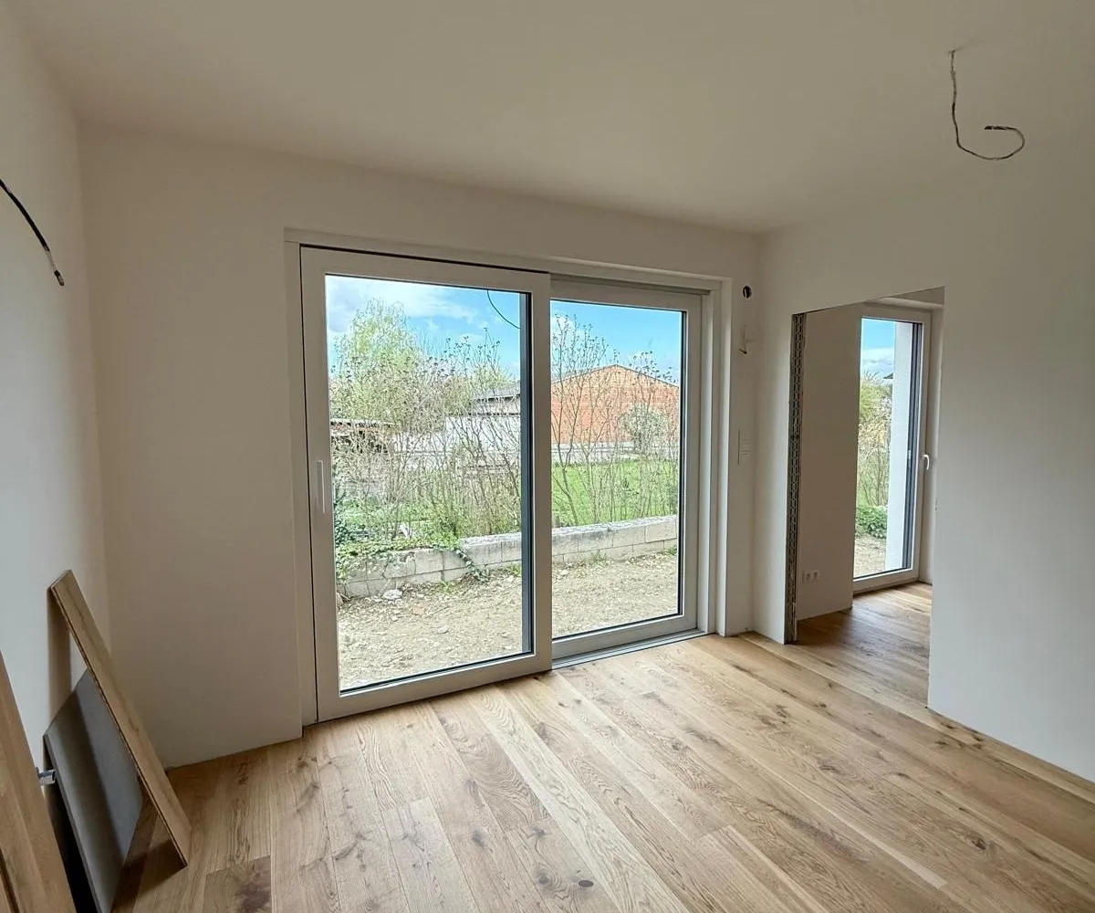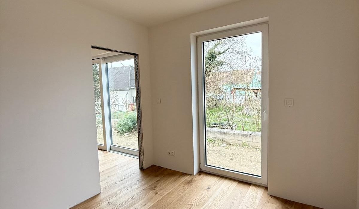 Die 44,77m² Wohnfläche teilen sich in eine Wohnküche mit Zugang auf die Terrasse (ca. 8m²) und in den Garten (ca. 31,17m²), 1 Schlafzimmer, Badezimmer mit WC, Vorraum und Abstellraum. Ebenfalls im Kaufpreis enthalten ist ein Autoabstellplatz.