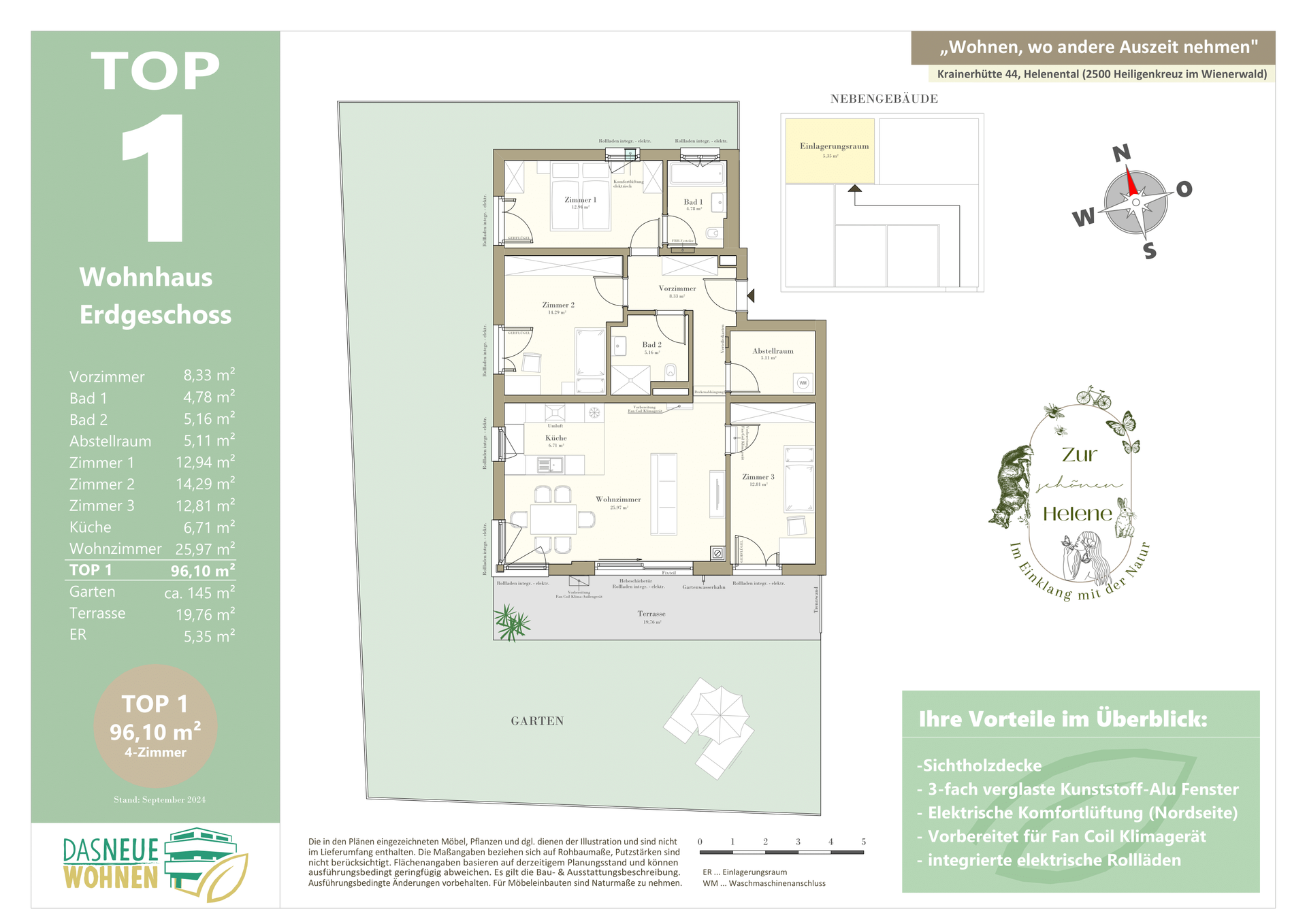 Die Eigentumswohnungen liegen im Biosphärenpark Wienerwald und sind trotzdem nur 5 Autominuten von Baden entfernt. Über eine nahe Bushaltestelle kommen Sie öffentlich in einer guten Viertelstunde zum Badener Bahnhof. Die Lage direkt am Helenentalradweg, die fußläufige Lage zur Schwechat (Fluss) und die zahlreichen Wanderwege sind nur einige der Highlights dieses schönen Projekts.