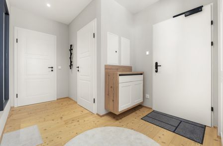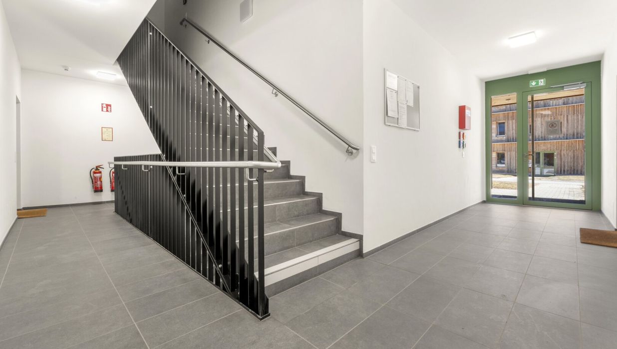 Diese rund 46 m² große Wohnung im Erdgeschoß mit ostseitiger Ausrichtung wurde 2023 vom Kärntner Bauträger Riedergarten errichtet.