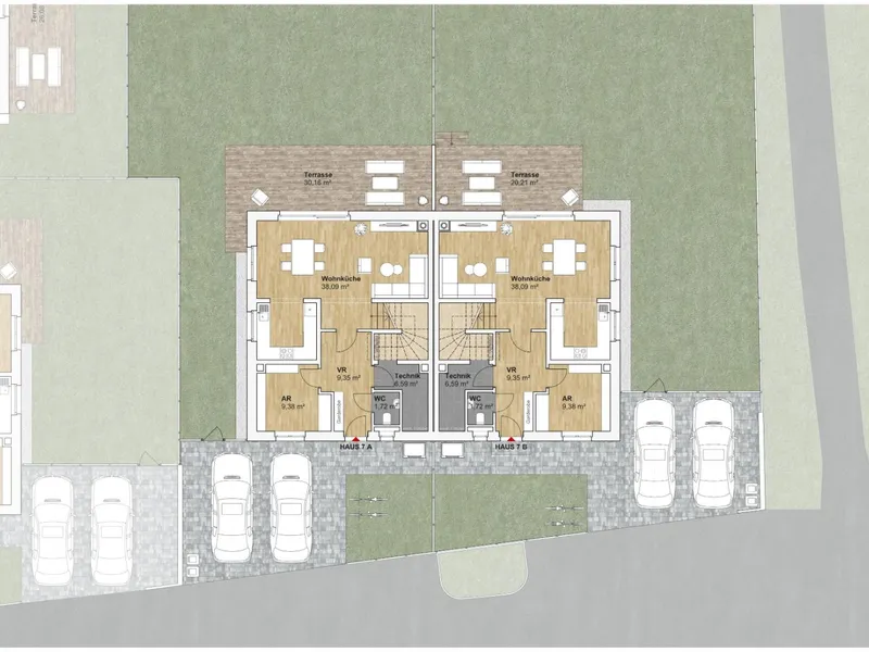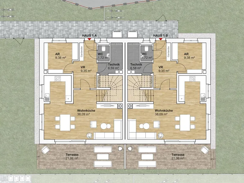 Das Herzstück bildet der offen gestaltete Wohn-Essbereich mit direktem Zugang zur Terrasse.