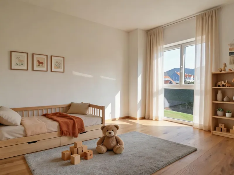 Großzügige Fensterflächen holen das Morgenlicht in den Raum und schaffen eine ruhige, klare Wohnatmosphäre.