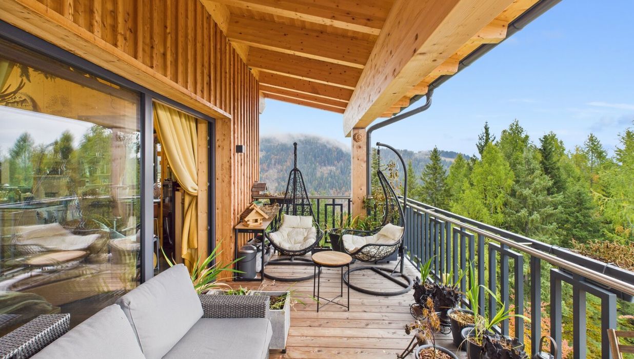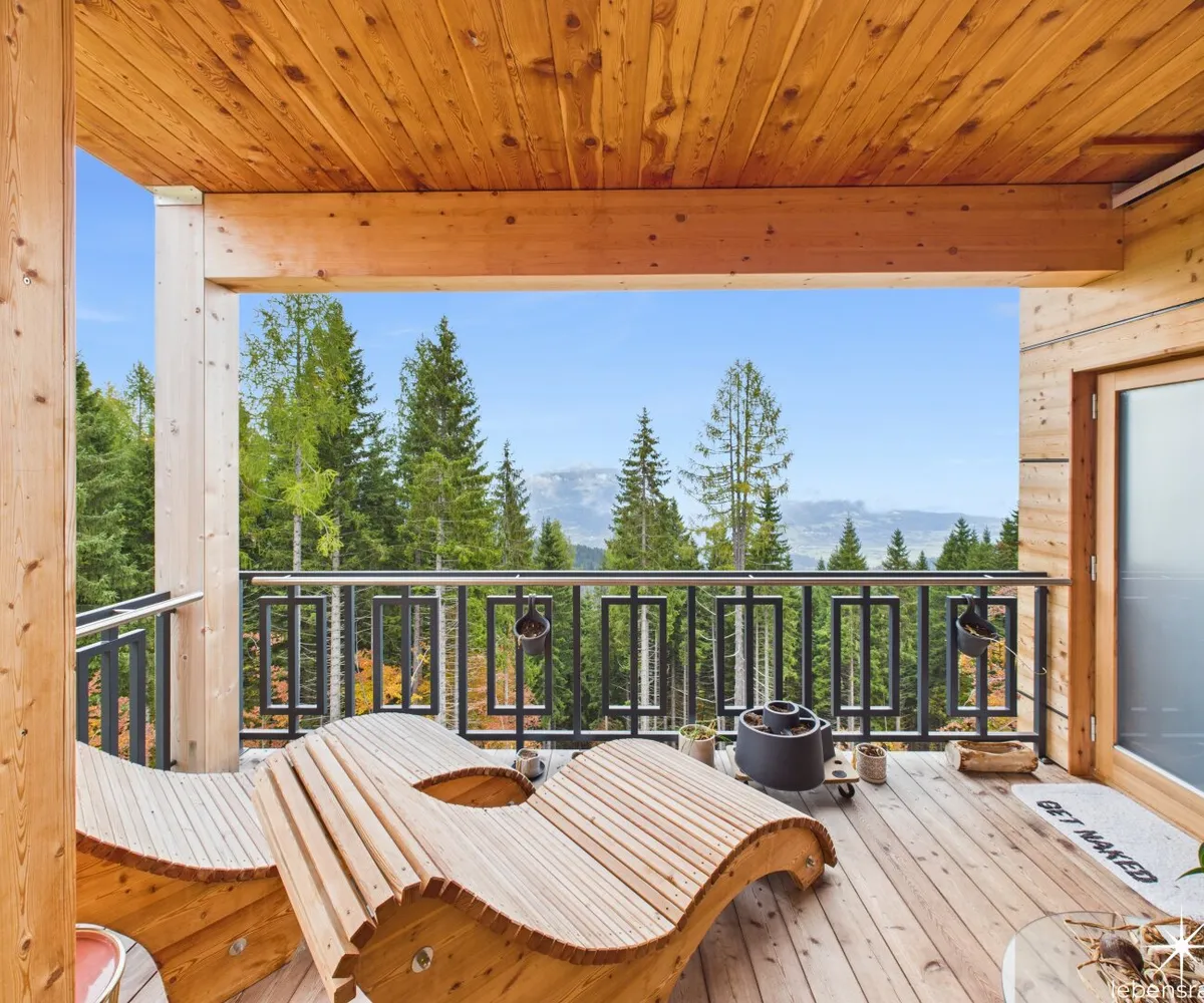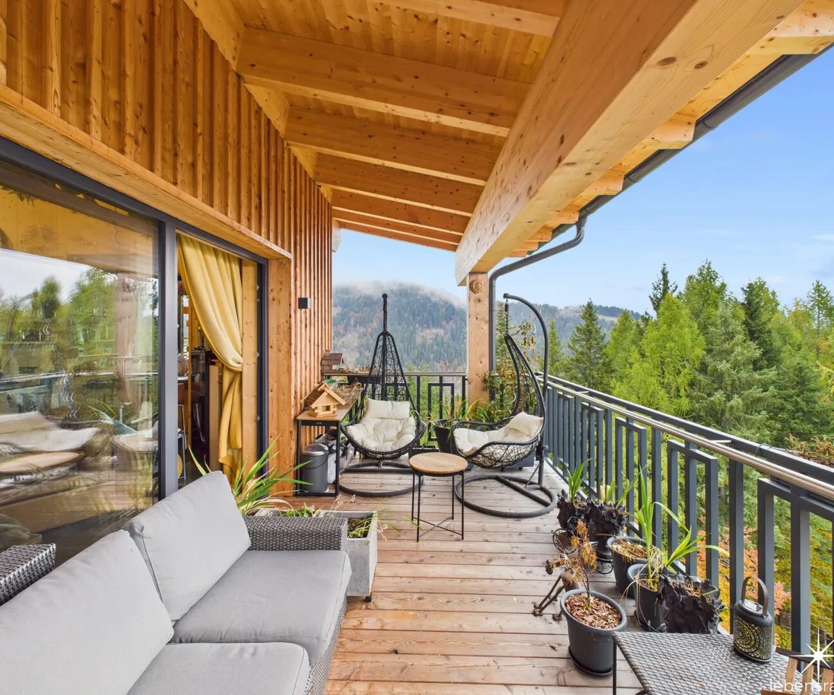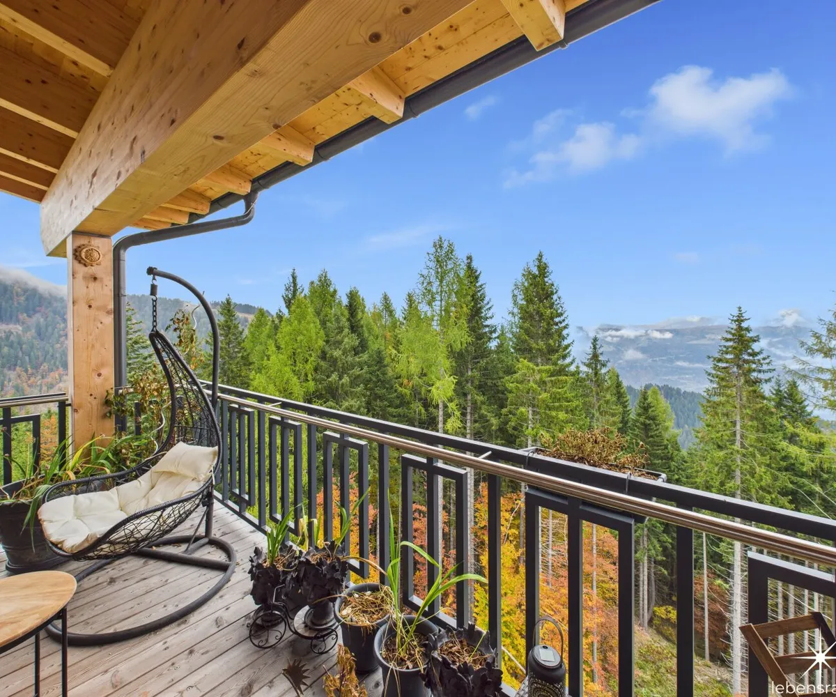 Genießen Sie das Leben im Freien auf gleich drei Balkonen, die Ihnen atemberaubende Ausblicke auf die umliegenden Berge, die Schipisten, die sanfte Hügellandschaft und die grüne Natur bieten. Hier können Sie die frische Bergluft einatmen, die Ruhe der Umgebung genießen und den Tag bei einem Glas Wein ausklingen lassen.