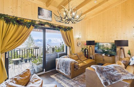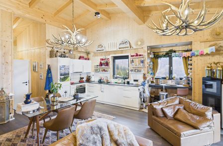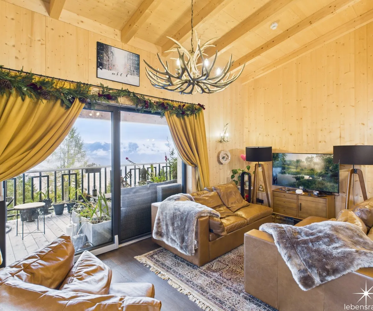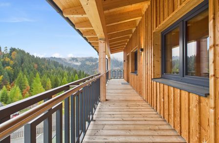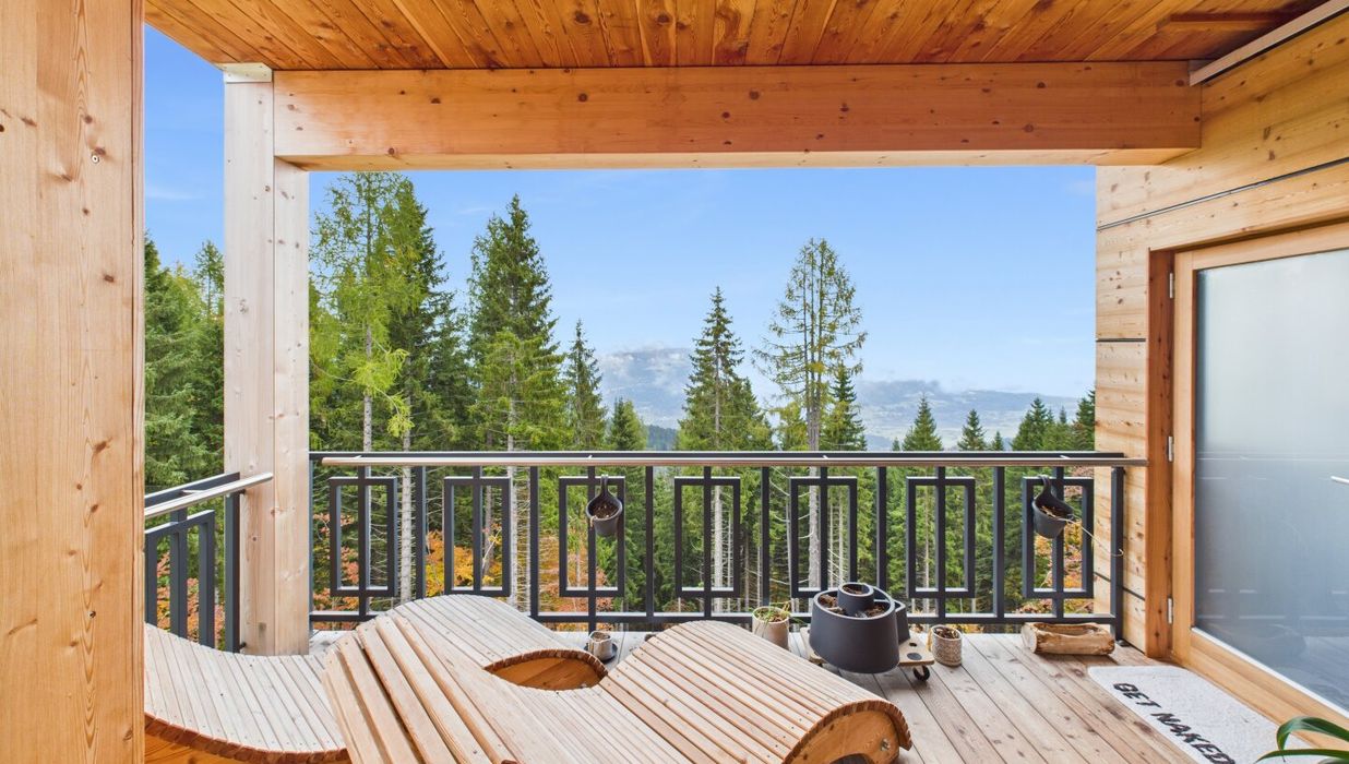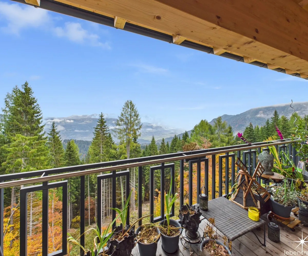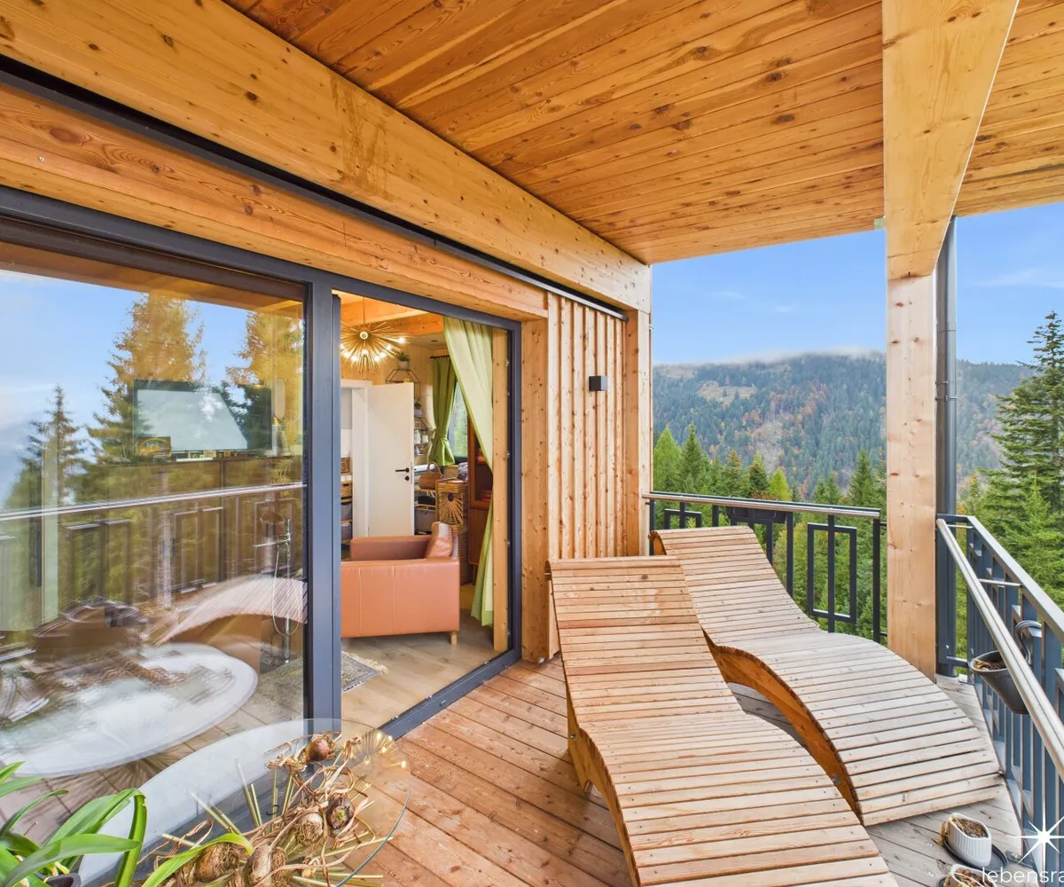 Genießen Sie das Leben im Freien auf gleich drei Balkonen, die Ihnen atemberaubende Ausblicke auf die umliegenden Berge, die Schipisten, die sanfte Hügellandschaft und die grüne Natur bieten. Hier können Sie die frische Bergluft einatmen, die Ruhe der Umgebung genießen und den Tag bei einem Glas Wein ausklingen lassen.