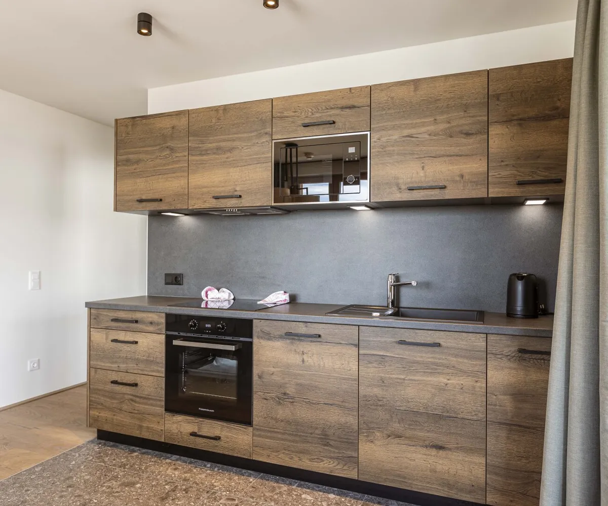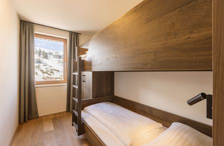 Geboten werden zwei Schlafzimmer – eines davon mit Stockbett– ein hochwertiges Badezimmer mit integrierter Sauna und begehbarer Dusche, ein separates WC sowie eine modern ausgestattete Küche mit Markengeräten. Der großzügige Vorraum bietet ausreichend Platz für Garderobe und Ski-Equipment – ideal für Wintersportler.