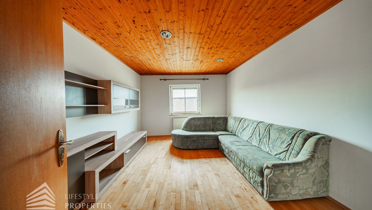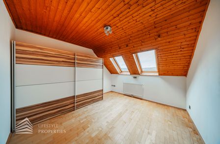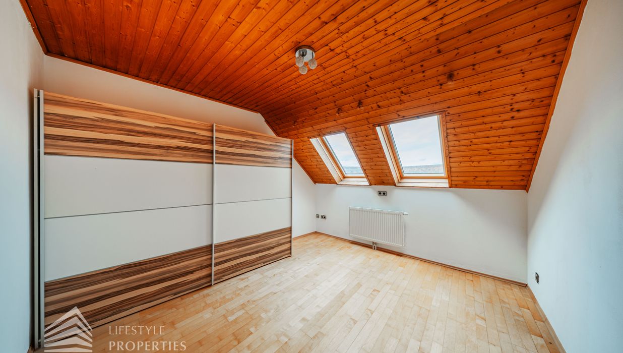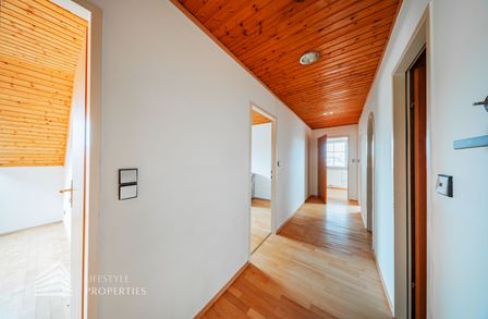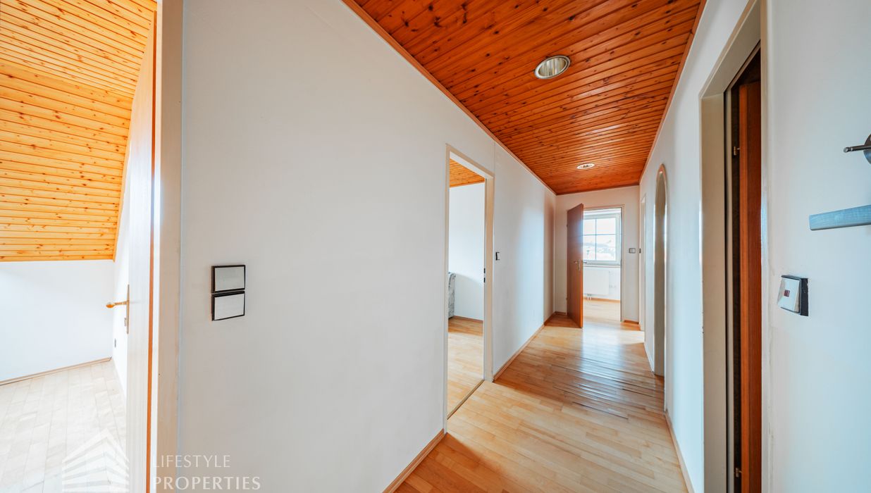 Bei Betreten der Wohnung gelangen Sie in den Vorraum, welcher alle Räume zentral miteinander verbindet. Auf der rechten Seite finden sie das WC, einen Schrankraum und das Badezimmer. Linksseitig liegen die Wohnräume, welche durch Dachfenster mit natürlichem Tageslicht durchflutet werden.