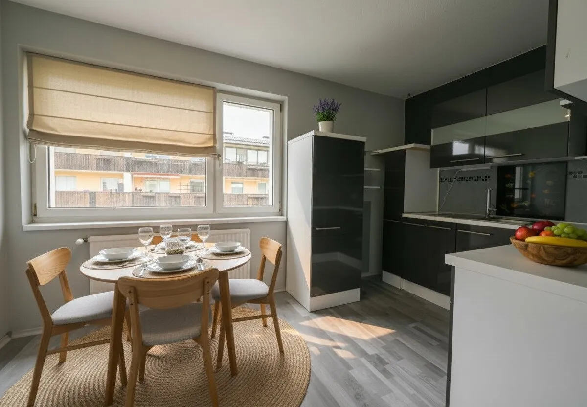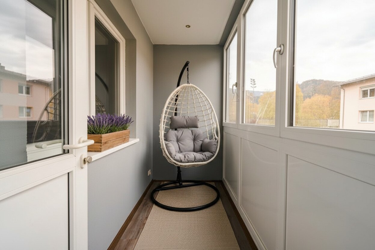 Ein besonderes Highlight ist die gemütliche Loggia, die zum Verweilen einlädt und einen schönen Ausblick über die Stadt bietet – ideal, um den Tag entspannt ausklingen zu lassen.