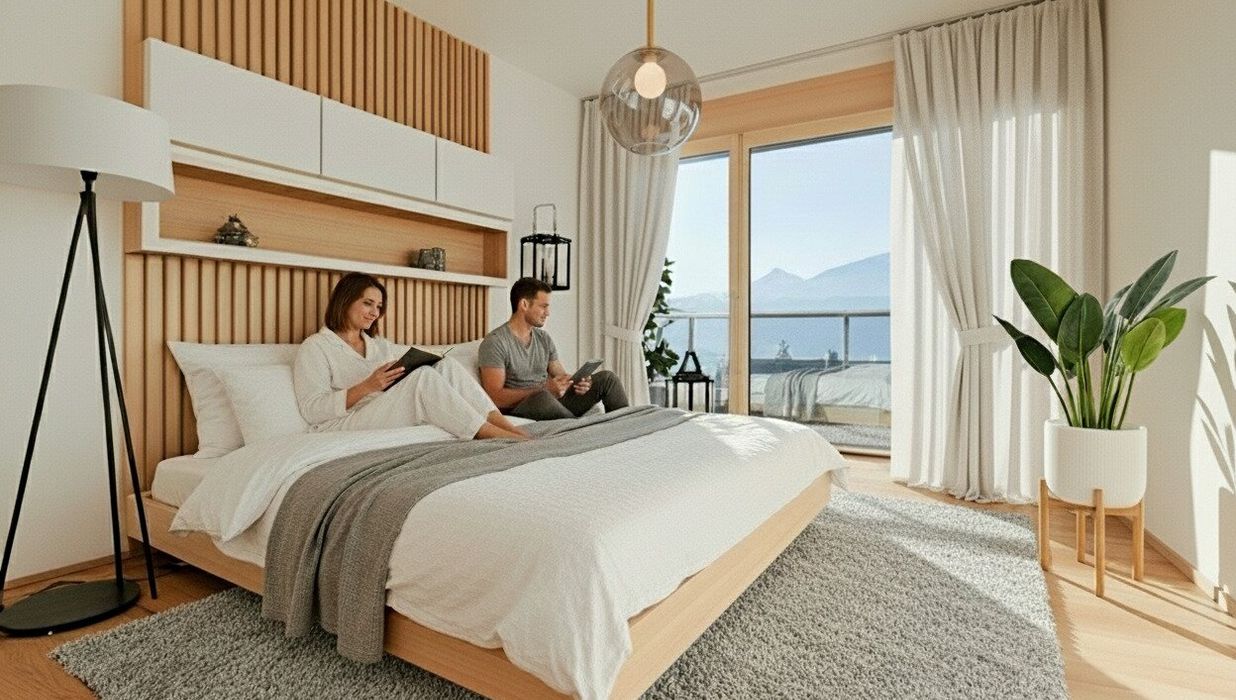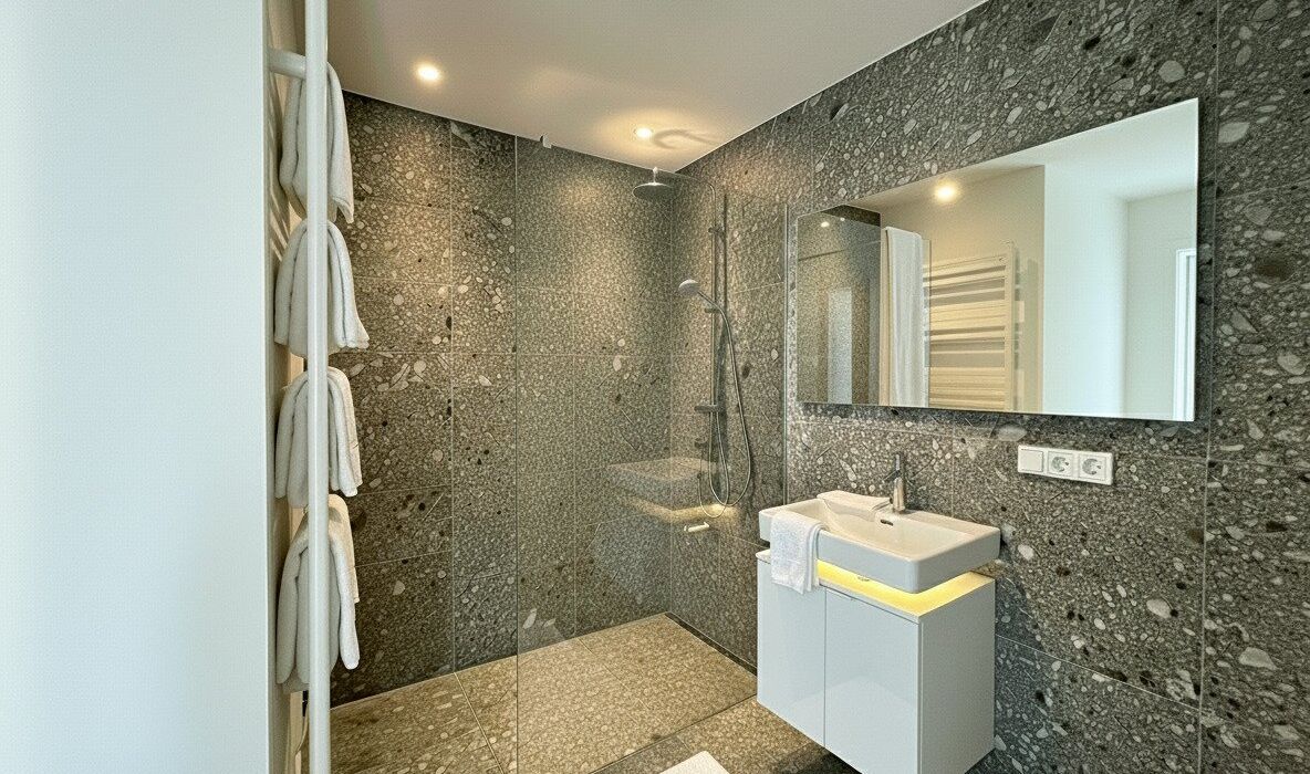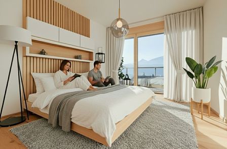 Die Wohnung überzeugt durch ihre großzügige Raumgestaltung und den hellen, offenen Wohnbereich. Bodentiefe Fenster schaffen ein lichtdurchflutetes Ambiente und unterstreichen das luftige Wohngefühl. Das Highlight ist die weitläufige Terrasse – ideal für entspannte Sonnenstunden oder gemütliche Abende mit Freunden. Die beiden Schlafzimmer bieten ausreichend Platz und Flexibilität – ob als Schlaf-, Arbeits- oder Gästezimmer.