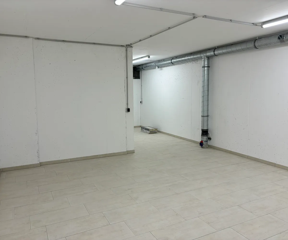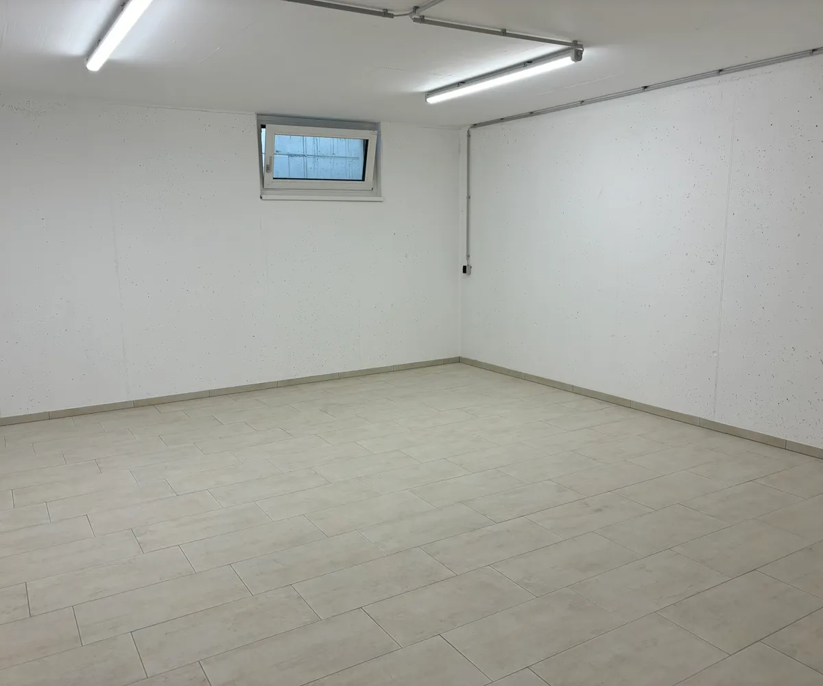 Zusätzlicher Lagerraum Dieses einzigartige Angebot wird durch einen vielseitigen Lagerraum/Kellerraum von ca. 30 m² ergänzt, der mitverkauft wird. Der Raum ist mit Fliesen ausgelegt und die Wände sind in einem frischen Weiß gestrichen. Zwei Lichtauslässe sorgen für eine helle und freundliche Atmosphäre. Dank der vorhandenen Steckdosen können Sie den Raum flexibel nutzen.