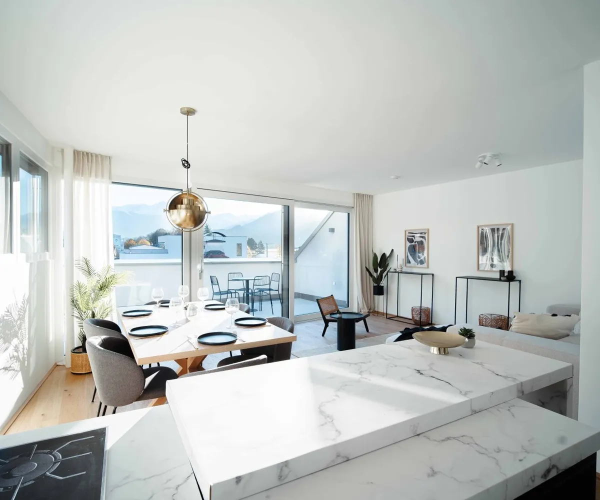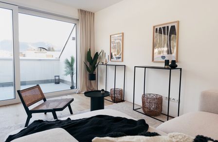 Diese lichtdurchflutete Dachgeschosswohnung, aufgeteilt auf 3 Zimmer und einer Wohnnutzfläche von ca. 83 m², verspricht pure Lebensenergie. Auf dem nach Süden ausgerichteten Balkon bietet sich Ihnen ein fantastischer Panoramablick auf die umliegenden Hausberge wie Patscherkofel, Serles und Nockspitze. Die nach Westen ausgerichtete Dachterrasse bildet eine Verlängerung des Wohnraums und wird zu einem perfekten Ort zum Entspannen, Lesen oder Sonnenbaden. Neben geselligen Grillabenden oder Fitnessaktivitäten können Sie hier auch einen atemberaubenden Sonnenuntergang genießen.