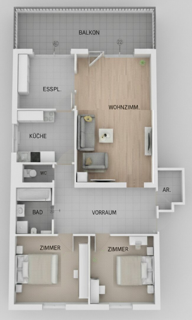 Diese neuwertige 3,5-Zimmerwohnung wurde im Jahr 2023 vollständig saniert und modern eingerichtet.