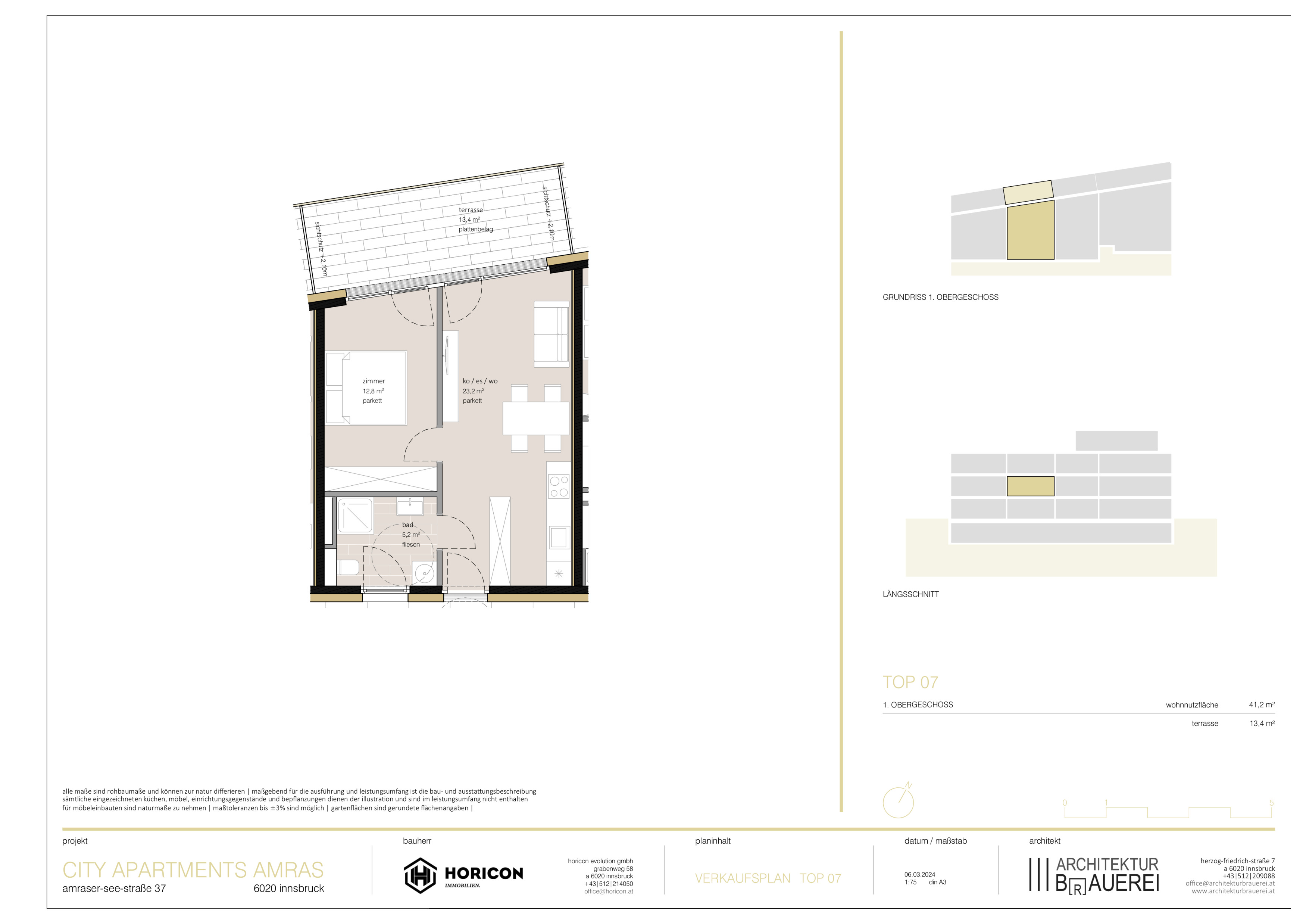 City Apartments Amras ist ein Wohnbauprojekt mit 13 Wohnungen aufgeteilt auf 4 Geschoße, davon neun 2-Zi.-Wohnungen, drei 3-Zi.-Wohnung und eine Penthousewohnung. Im Untergeschoß sind 14 Tiefgaragenabstellplätze, die Kellerabteile und die allgemeinen Nebenräumlichkeiten untergebracht.