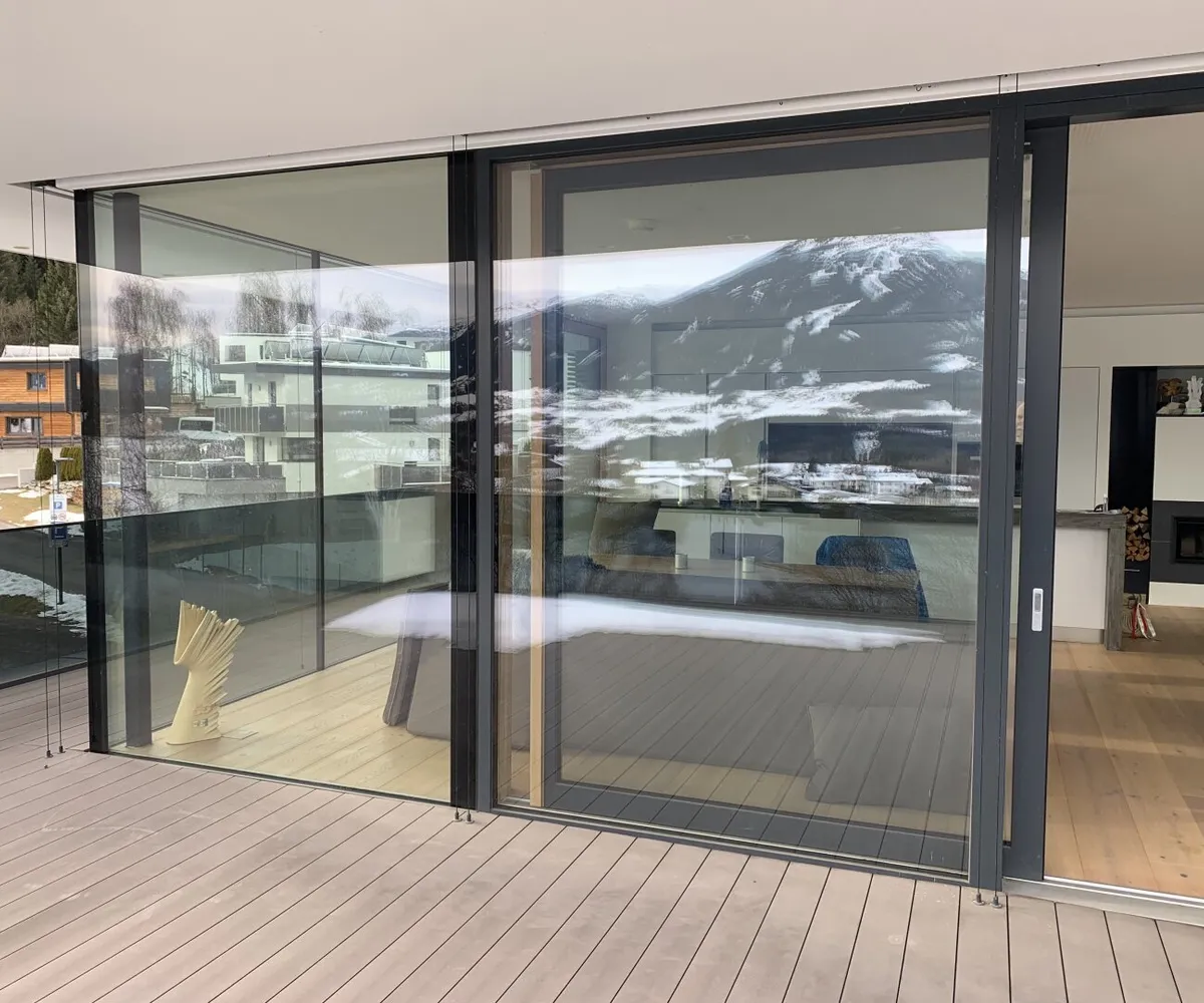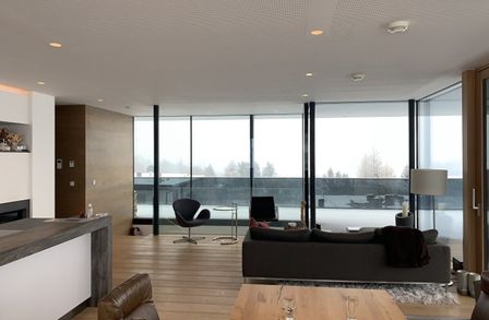 • Offene und helle Architektur mit großen Glasflächen und Schiebeelementen