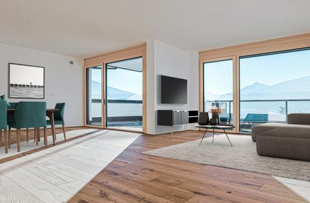 Die Wohnung beeindruckt durch ihre durchdachte Raumaufteilung, hochwertige Materialien und helle, offene Gestaltung. Der großzügige Wohnbereich lädt zum Entspannen und Wohlfühlen ein, während bodentiefe Fenster für ein lichtdurchflutetes Ambiente sorgen. Ein besonderes Highlight ist die weitläufige Terrasse – ideal für entspannte Sonnenstunden oder gesellige Abende im Freien.