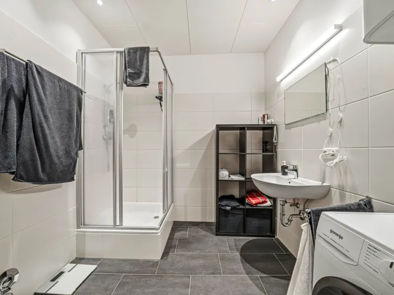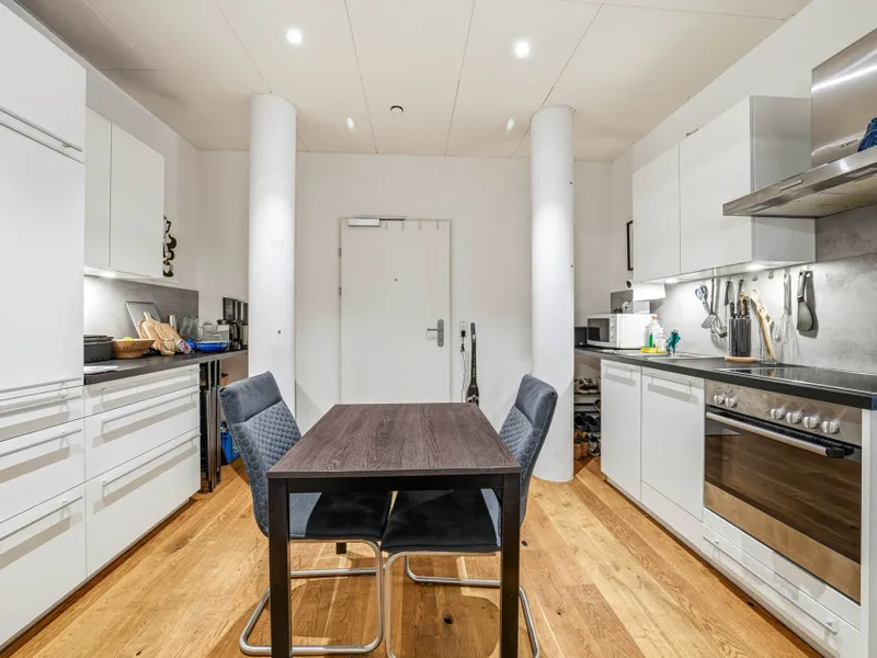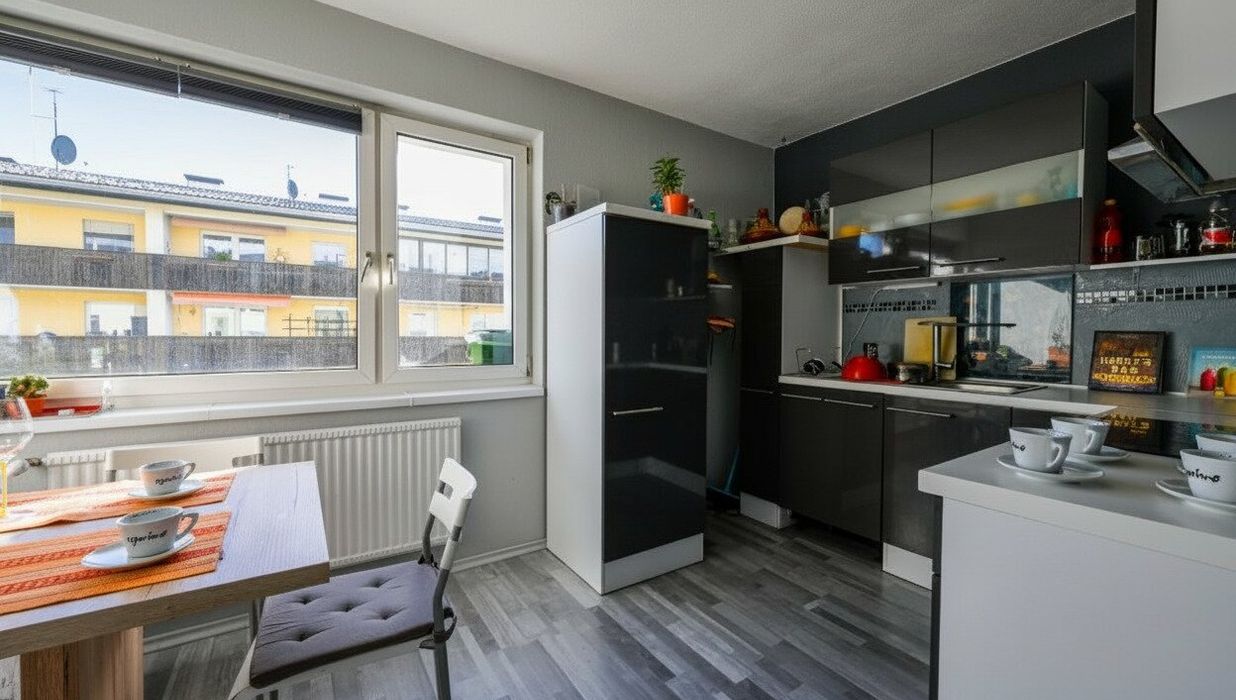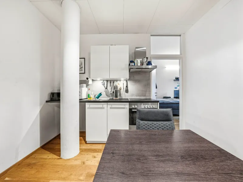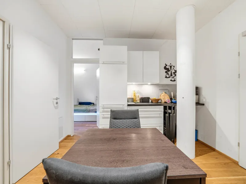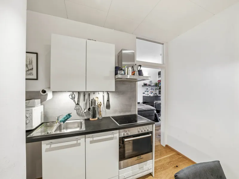 Zusätzlich zu den zwei gut geschnittenen Zimmern überzeugt die Wohnung mit einer praktischen und modernen Einbauküche, die Ihnen das Kochen zum Vergnügen macht. Die zeitgemäße Bad mit Dusche, Waschtisch, WC und Waschmaschinenanschluss bieten Ihnen den Komfort, den Sie sich wünschen.