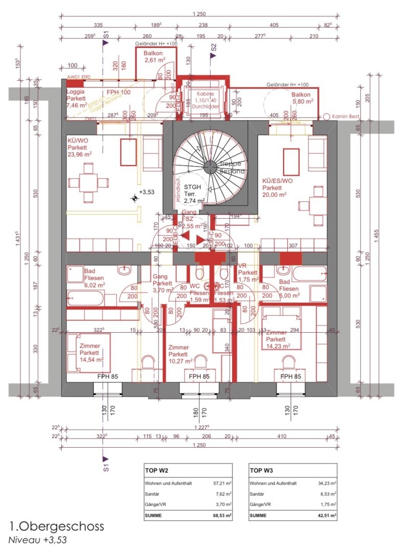 Das Bad wird neu gefliest und mit Dusche ausgestattet , das WC ist separat . Zwei gut geschnittene Zimmer ( 14,54 m² und 10,27 m² ) runden den durchdachten Grundriss ab.