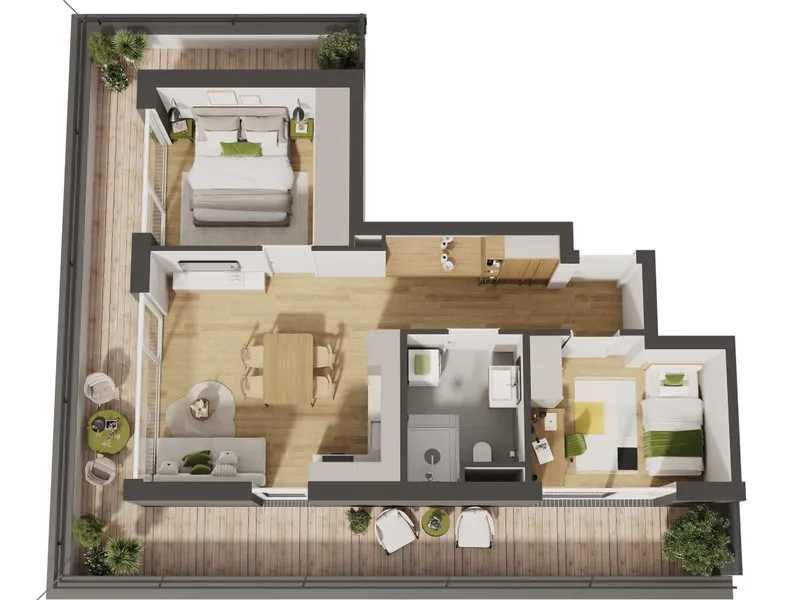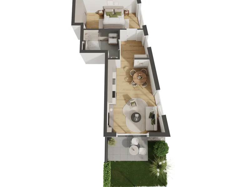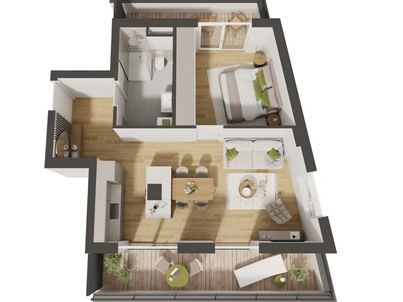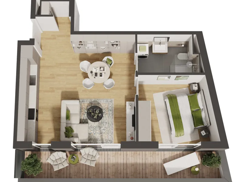 Geschäfte für den täglichen Bedarf in unmittelbarer Umgebung und gleichzeitig die Nähe zur Natur - K16 verbindet urbanes Lebensgefühl mit naturnaher Wohnqualität.