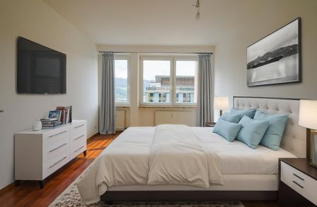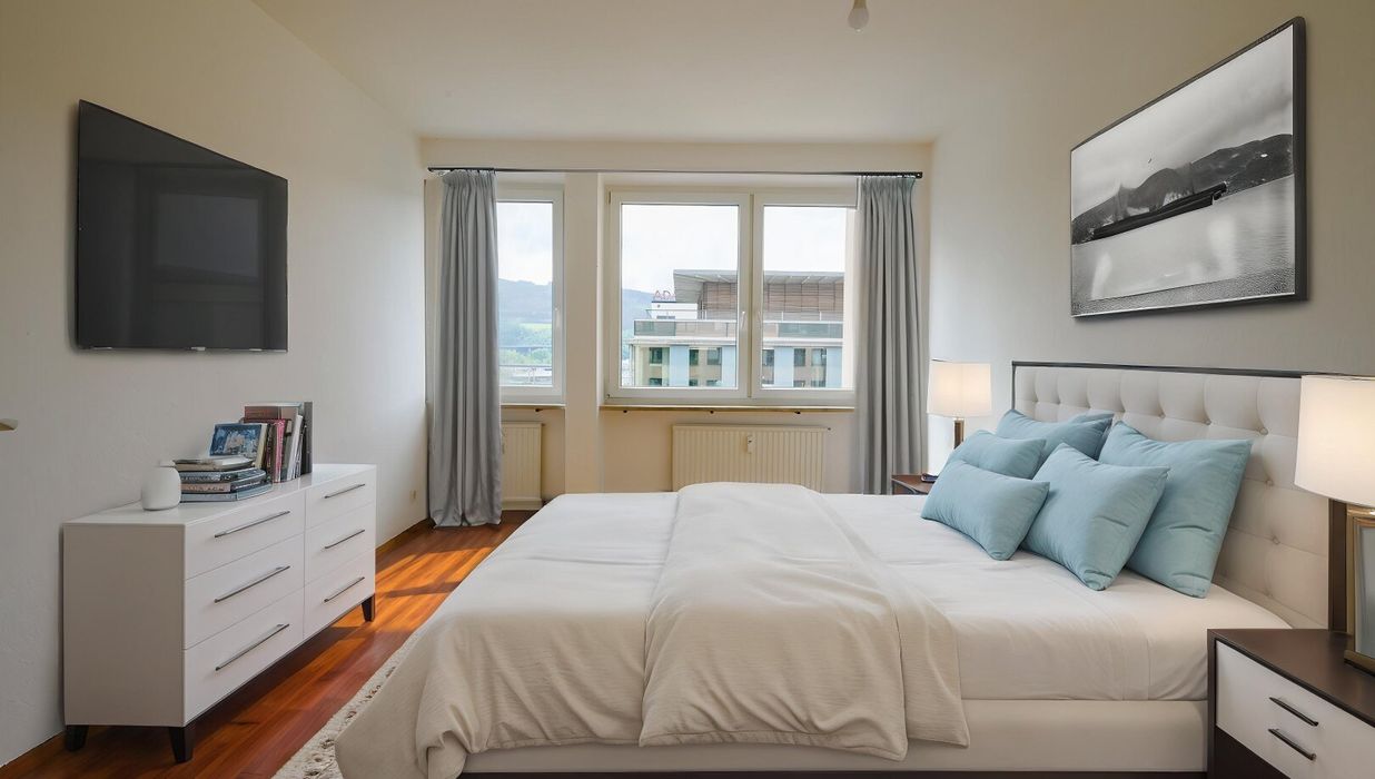- geräumiges Schlafzimmer mit mehreren Fenstern