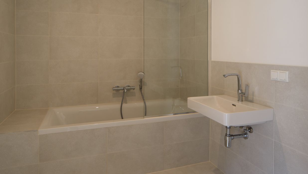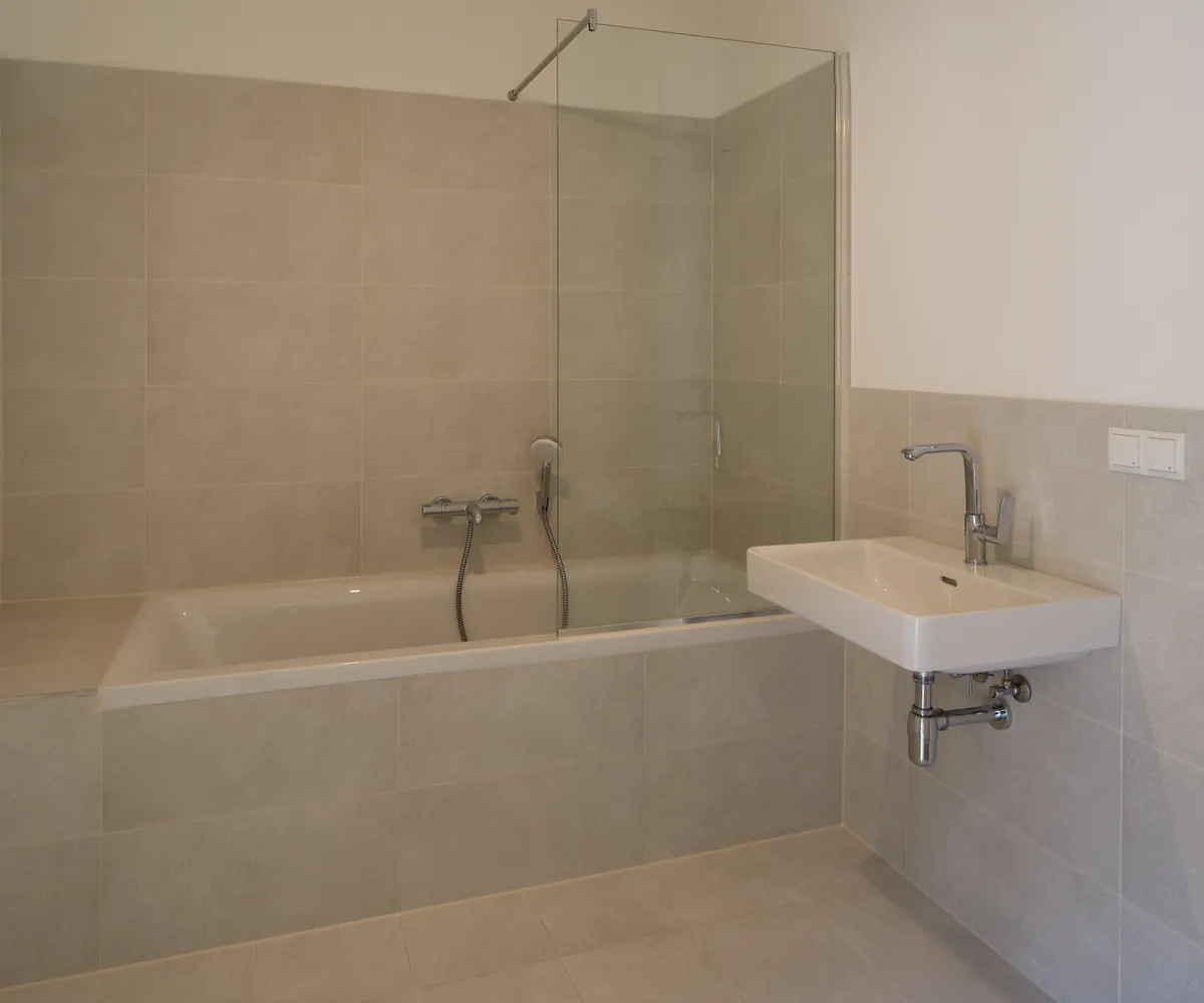 • Großformatiges Feinsteinzeug in den Bädern und Nebenräumen