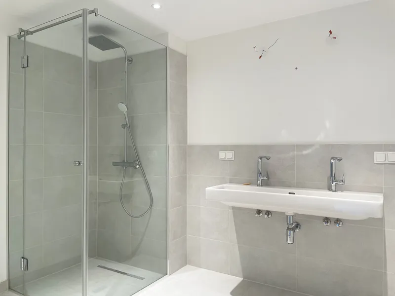 • Großformatiges Feinsteinzeug in den Bädern und Nebenräumen