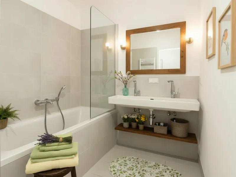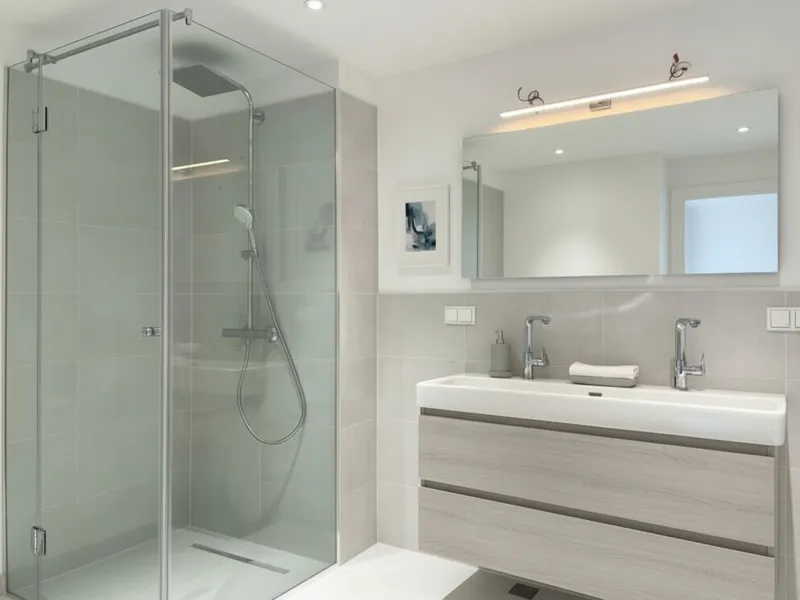 • Großformatiges Feinsteinzeug in den Bädern und Nebenräumen