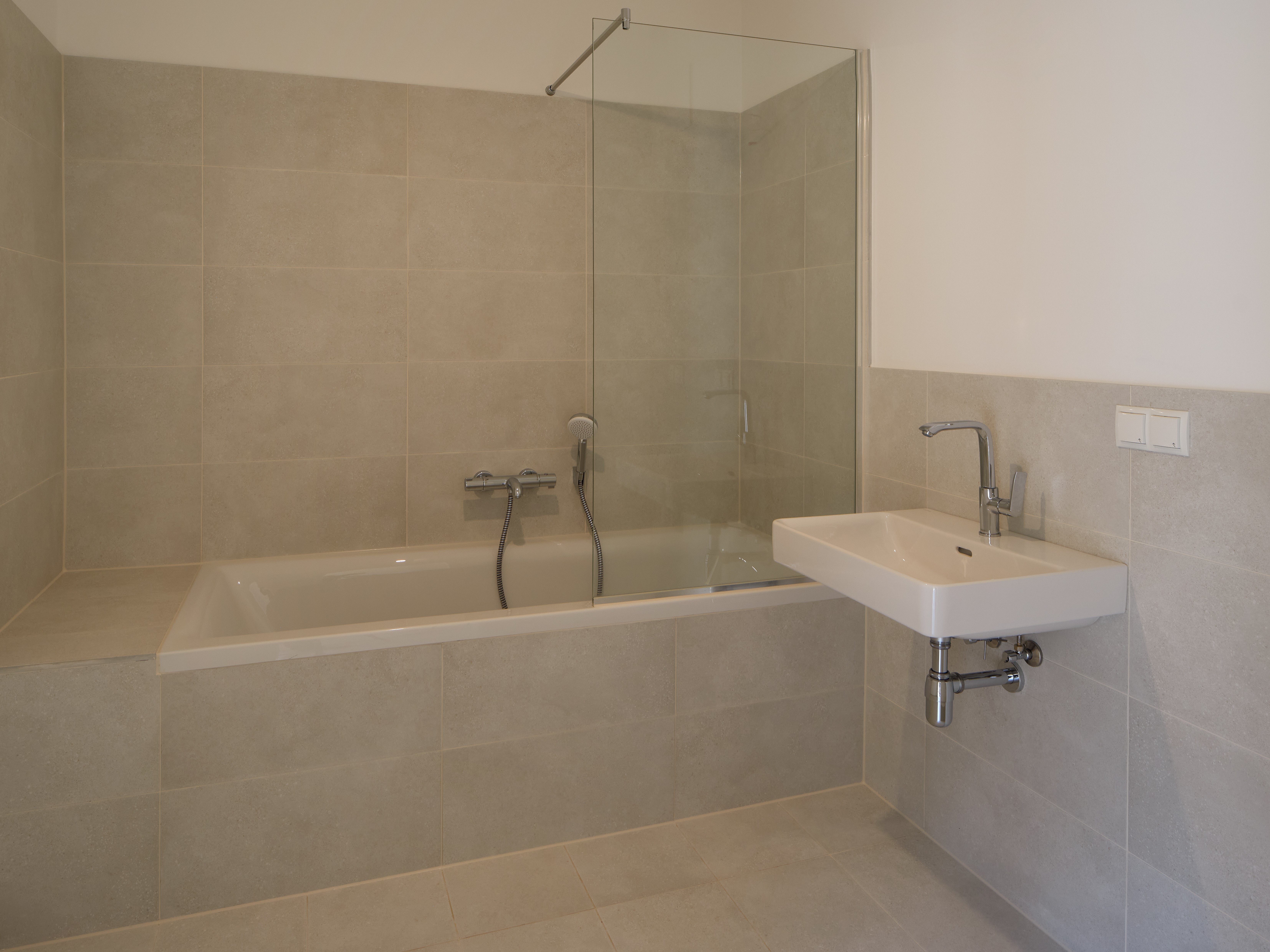 • Großformatiges Feinsteinzeug in den Bädern und Nebenräumen