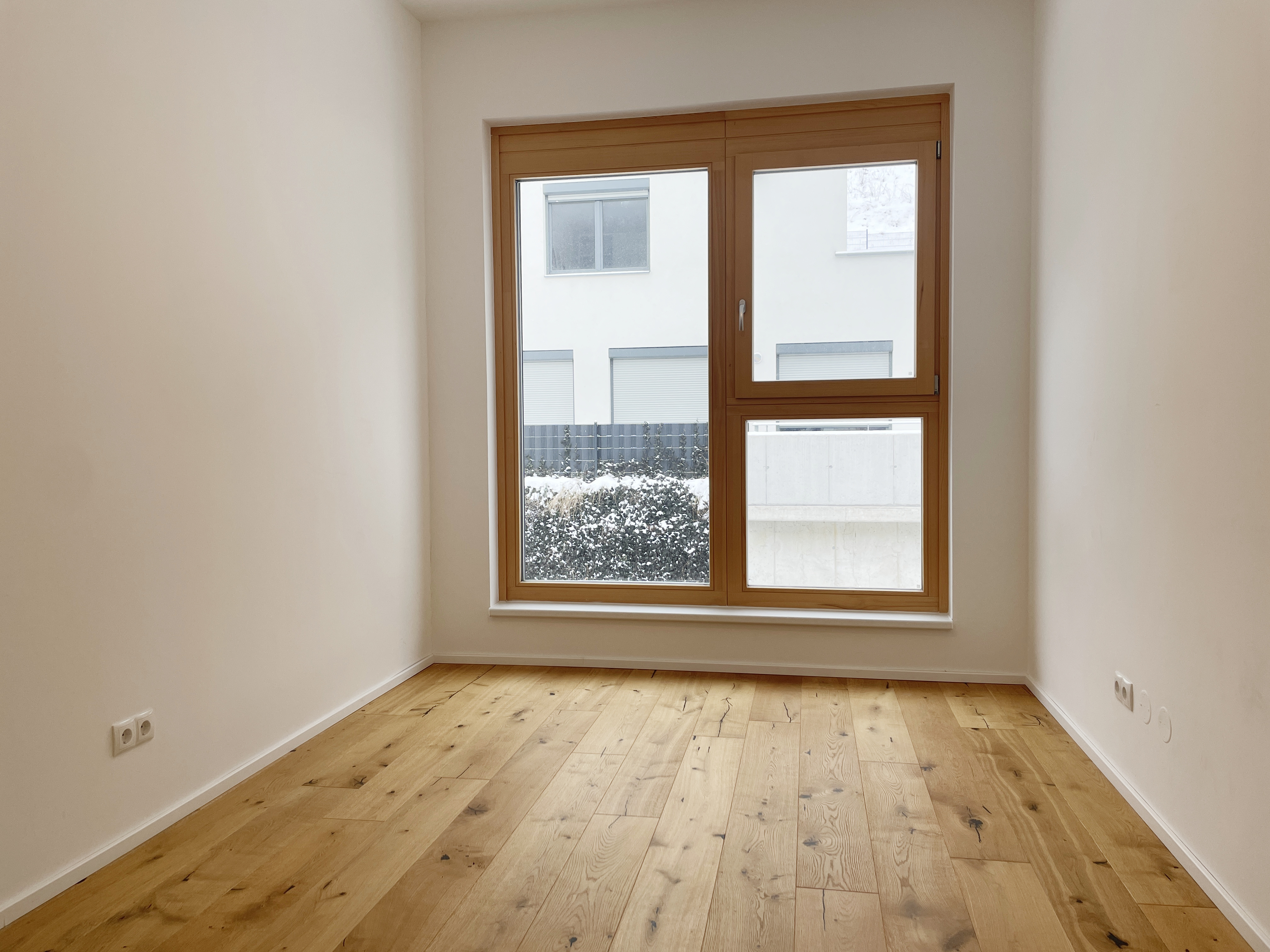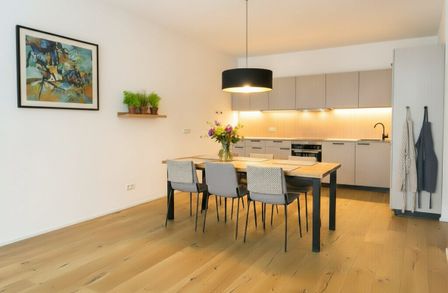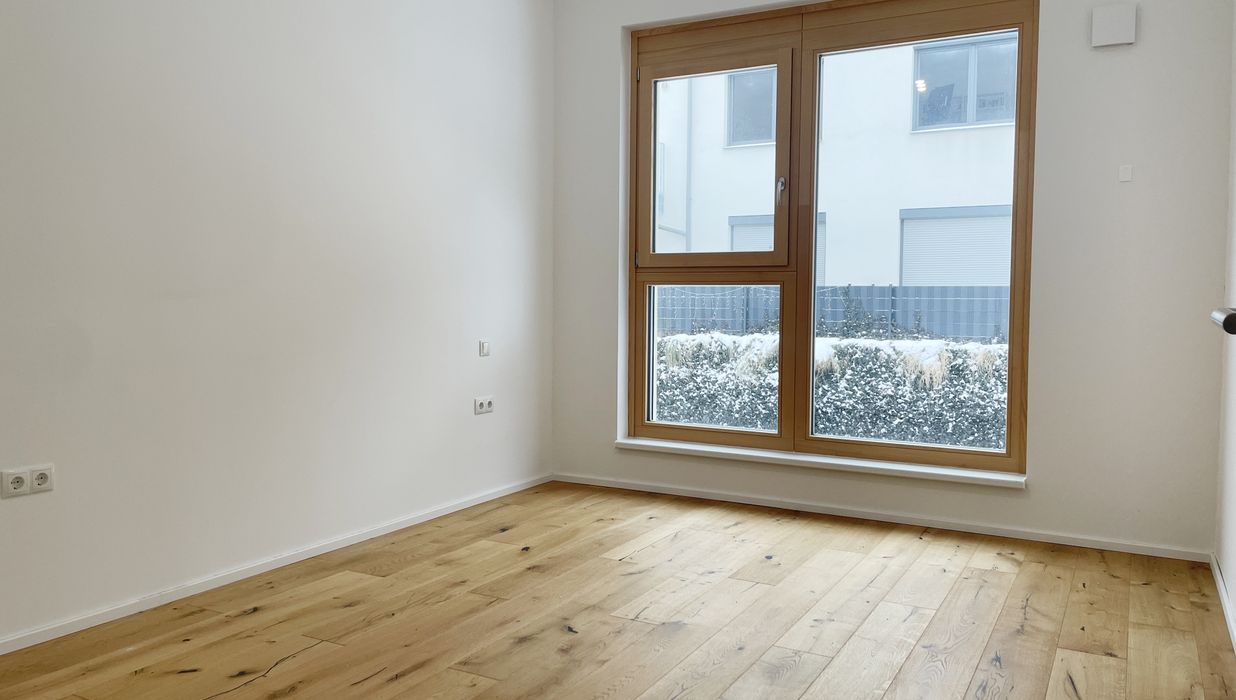 Die Wohnungen sind großzügig geschnitten und zeichnen sich durch sehr intelligente Grundrissgestaltung aus. Alle Wohnungen verfügen über hochwertige Dielenböden in den Wohnräumen, großformatiges Feinsteinzeug in den Nebenräumen und Bädern, externen Sonnenschutz, Fußbodenheizung und eine Sommer-Temperierung. Die Küche ist nicht möbliert.