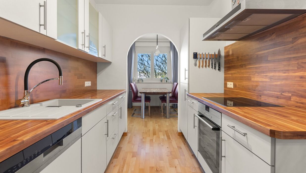 Möblierung: Neue Küche mit Geräten, neues Bad mit Badzimmermöbeln, Einbaukasten im Vorraum