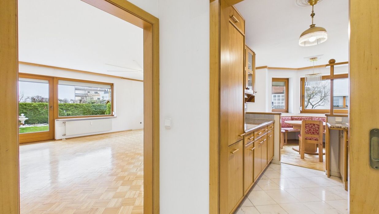 Einkaufsmöglichkeiten, Schulen und öffentliche Verkehrsanbindungen sind schnell erreichbar und machen den Alltag besonders komfortabel. Gleichzeitig sorgt die ruhige Wohnumgebung für ein angenehmes und entspanntes Wohngefühl. Eine ideale Lage für alle, die naturnah und dennoch stadtnah wohnen möchten.