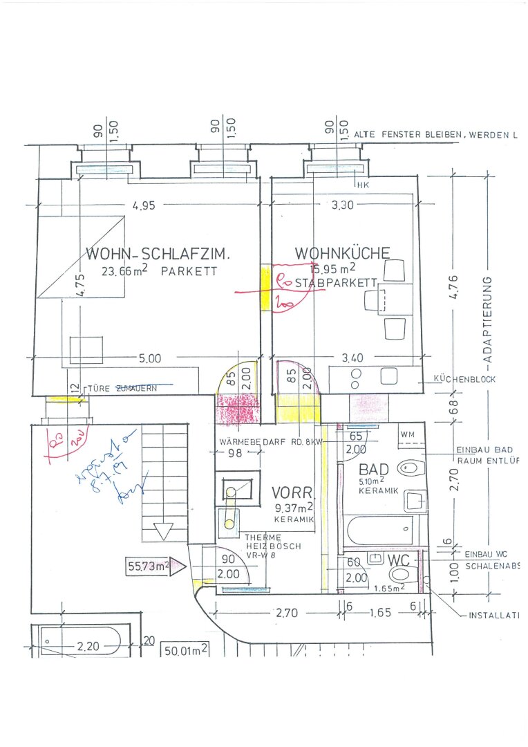 56m² Wohnfläche aufgeteilt:1 Vorraum, 1 Wohnküche, 1 Wohn- und Schlafzimmer, 1 Bad mit Badewanne, 1 WC extra