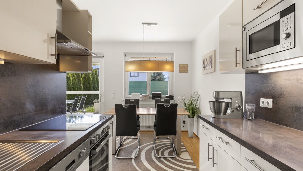 Ausstattung & Highlights: Schöne Einbauküche, tolles Bad mit Badewanne und barrierefreier Dusche, großer XXL-Garten.