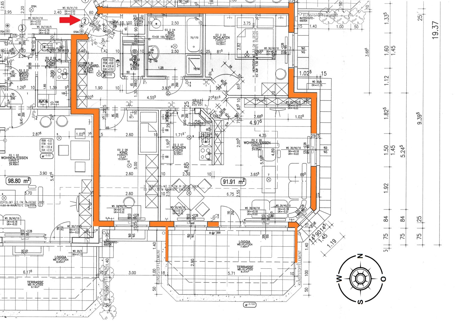 Stockwerk: Erdgeschoss - Wohnung TOP 2/E, Süd-/Ostausrichtung (ECKWOHNUNG).