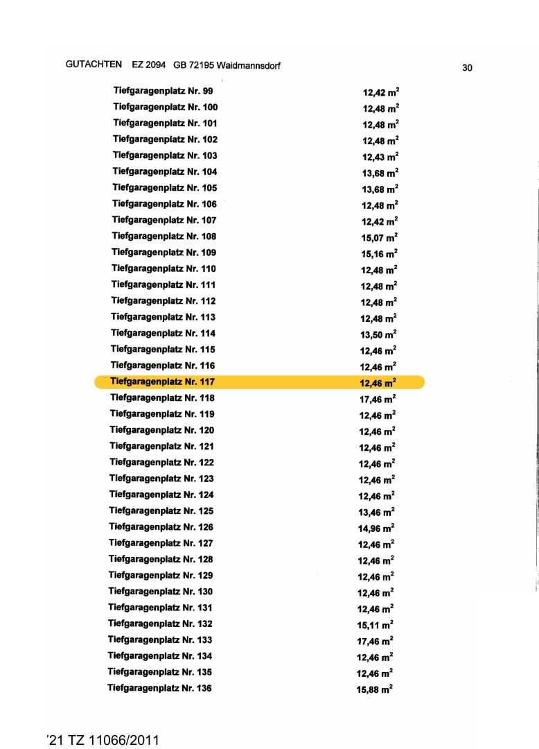 Stellplätze: 1 Tiefgaragenstellplatz TOP 117