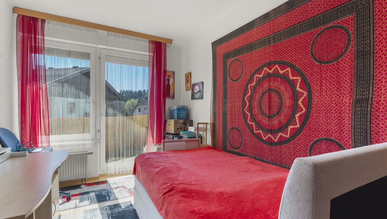 Schöne, sonnige und ruhige 3 Zimmer Wohnung mit XL-Terrasse in Feschnig in der Mantschehofgasse, in einer jungen und gepflegten Wohnhausanlage. Genießen Sie die sonnige und ruhige XL-Terrasse mit herrlichem Ausblick ins Grüne. Die Wohnung bietet viel Platz und ist wie folgt aufgeteilt, großer Vorraum/Garderobe (11,04m²), großes Wohn-/Esszimmer mit offener Küche (35,57m²) mit Ausgang zur Südterrasse, Elternschlafzimmer (13,78m²) mit eigener Terrasse, Kinderzimmer (14,91m²) mit eigener Terrasse, großes Bad mit Badewanne (5,65m²), WC extra (1,60m²) und Abstellraum (1,80m²). Weiters gehört zur Wohnung ein ca. 4,33m² Kellerabteil. Alle Flächenangaben lt. Plan und Nutzwertgutachten und ohne Gewähr!
