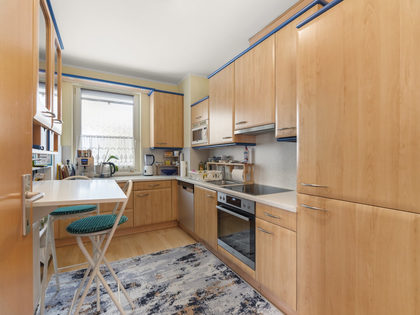 Möblierung: Schöne Küche mit Geräten und Einbaukästen